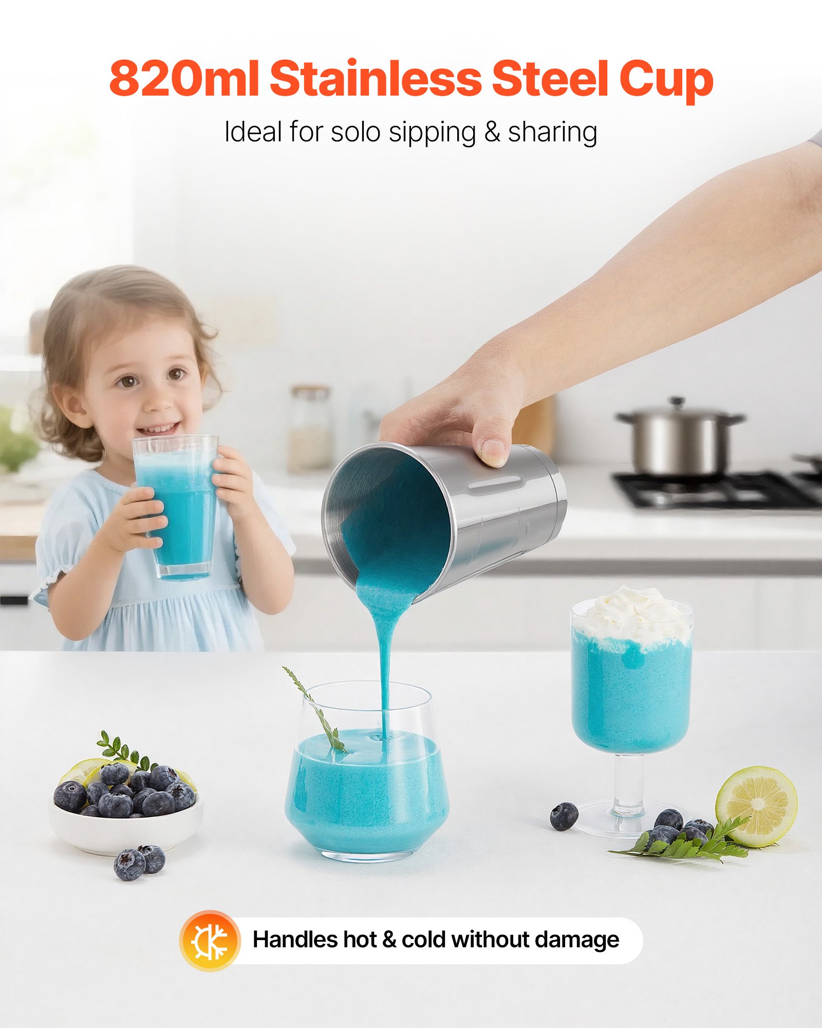Easy to Clean: Comes with a 450 ml stainless steel cup, perfect for solo enjoyment or sharing. The shake mixer head and cup are detachable for direct rinsing or dishwasher cleaning, making maintenance simple and effortless for everyday use