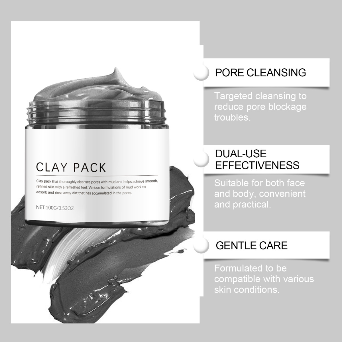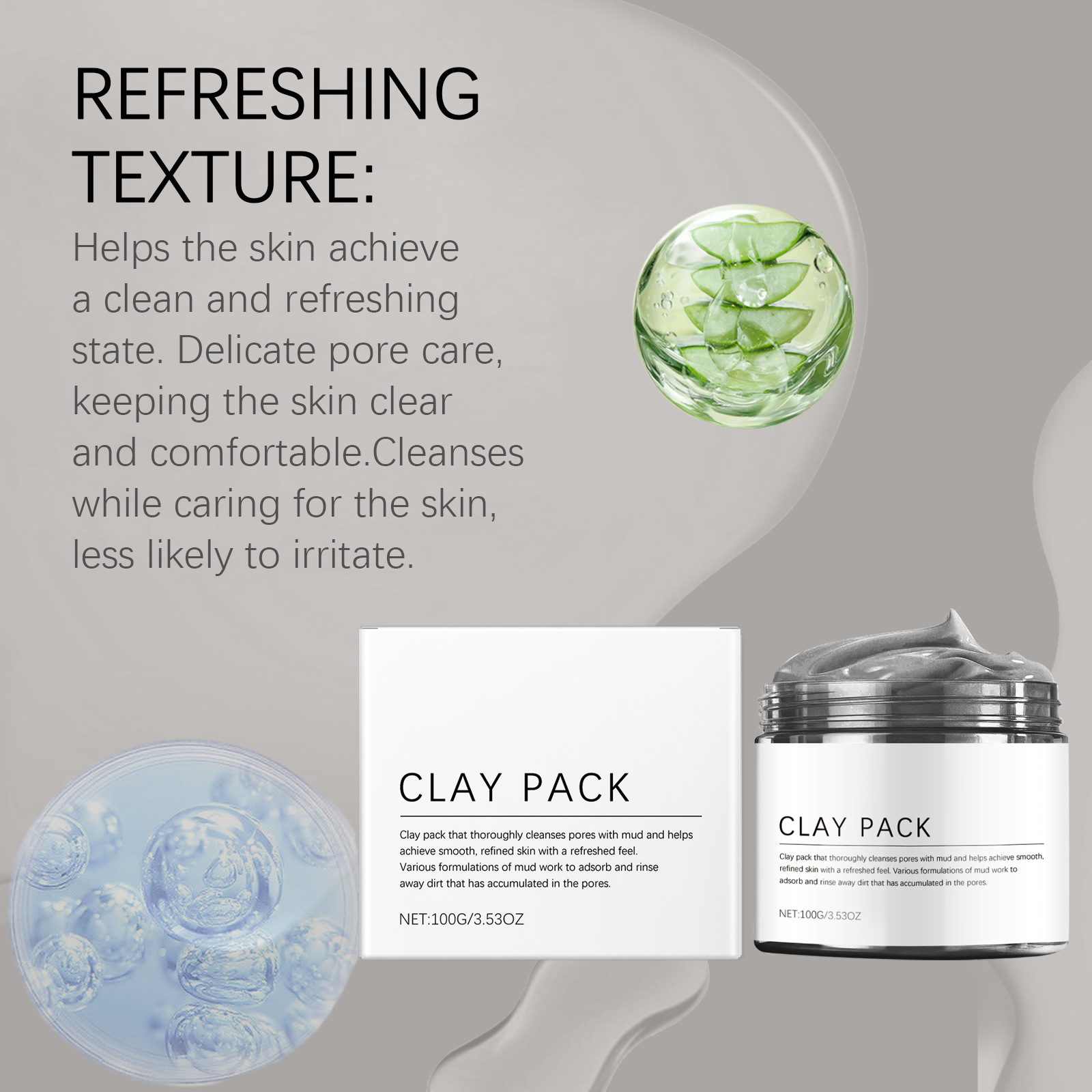 Water, glycerol, propylene glycol, glycerol stearate, mineral oil, triethanolamine, bentonite, 1,2-hexanediol and kaolin.