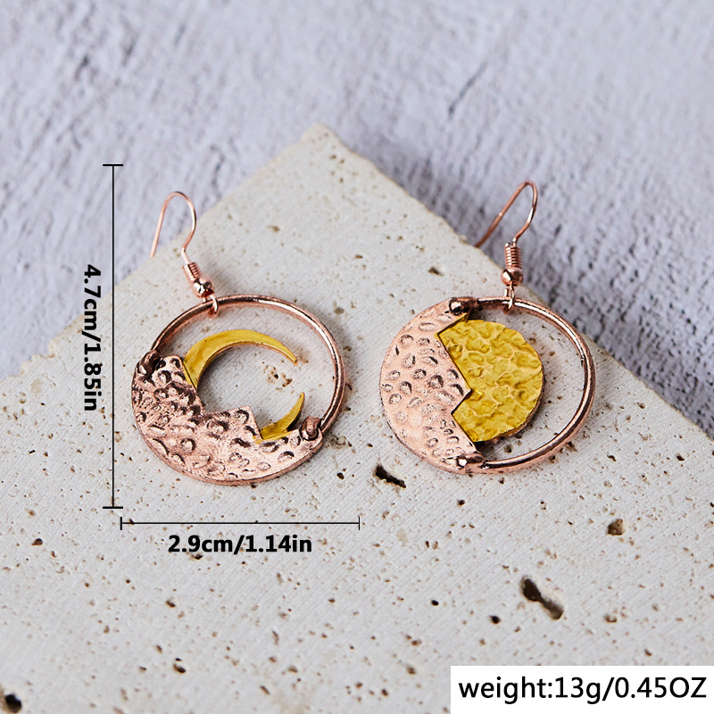 Mingcheng Bohemian-style Vintage Hollow Moon Pendant Earrings