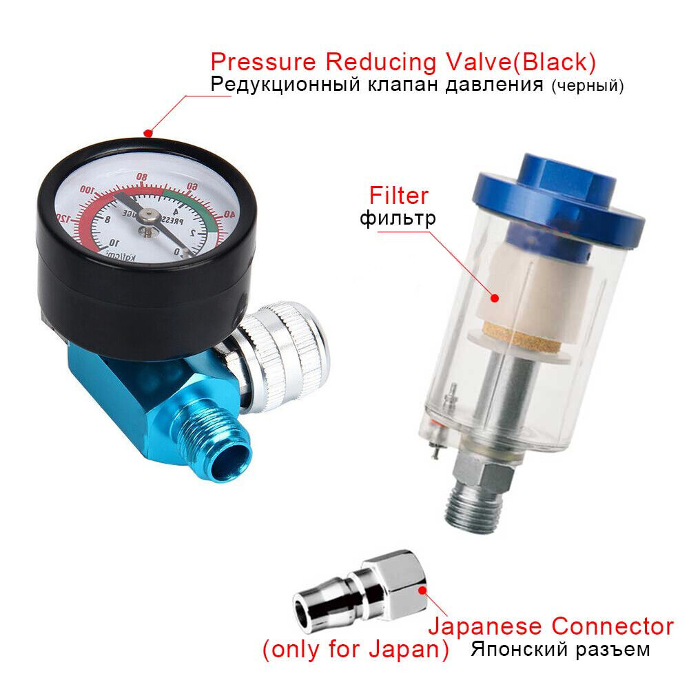 Mini Air Pressure Regulator Gauge Spray Gun & In-Line Water Trap Air Filter