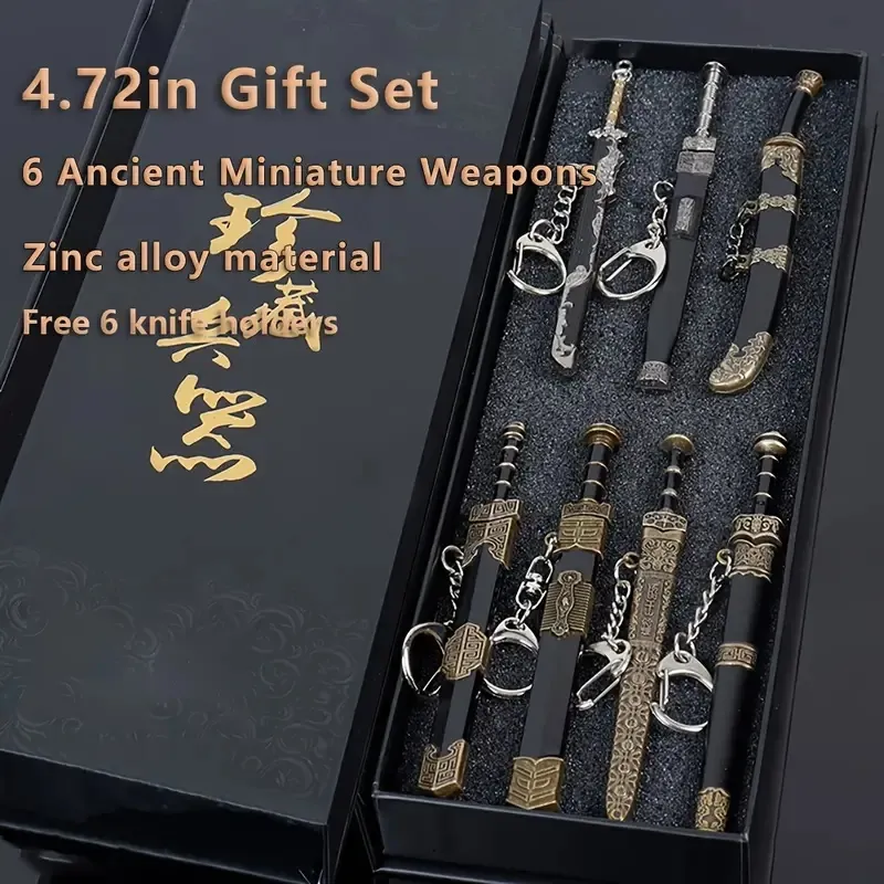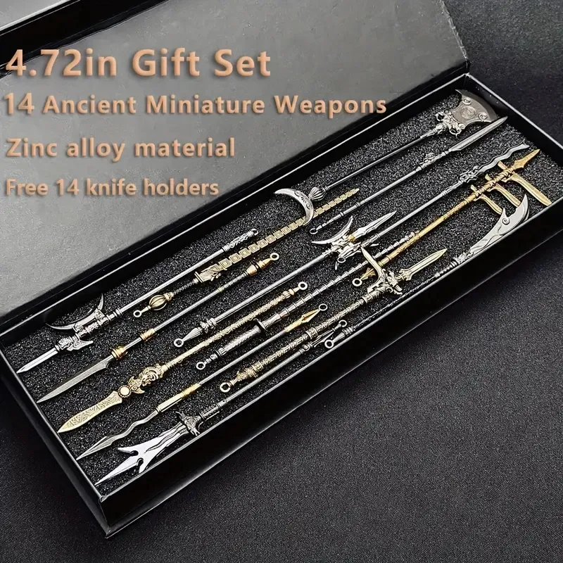 Mini Ancient Sword Set With Display Stand (6pcs) Or (14pcs) - Metal Mini Sword Weapon Model Keychain Pendant, Suitable For History Enthusiasts, Party Supplies And Decorations, Unique Gifts, Collectibl