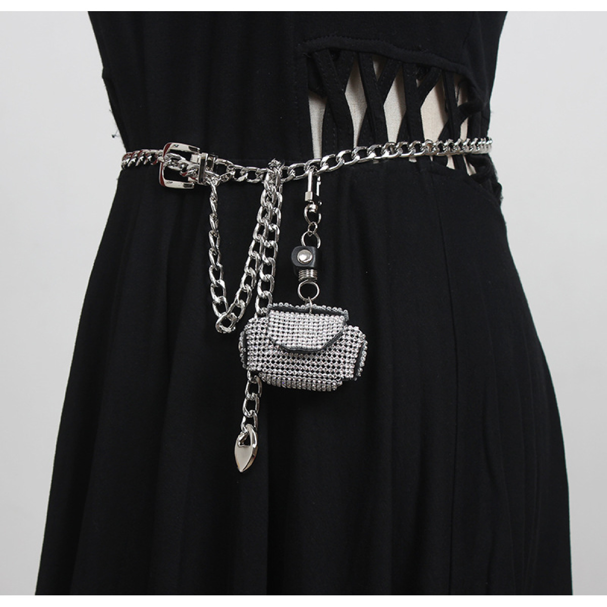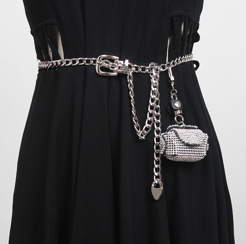 Color: Silver waist chain + waist bag