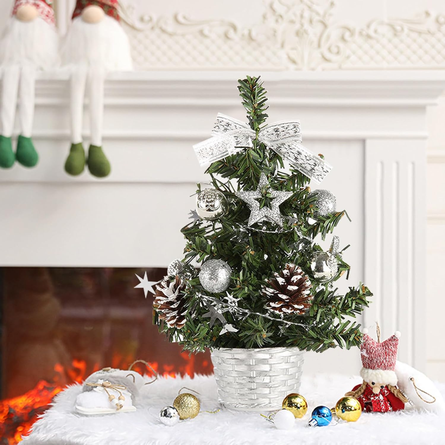 Unique Festive Design: Featuring lifelike greenery that mimics real pine, this charming small Christmas trees instantly elevates holiday table, desk, or mantel. Using the Christmas tree decorations is a quick way to infuse your space with Christmas flair
