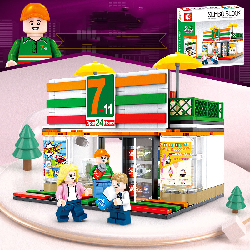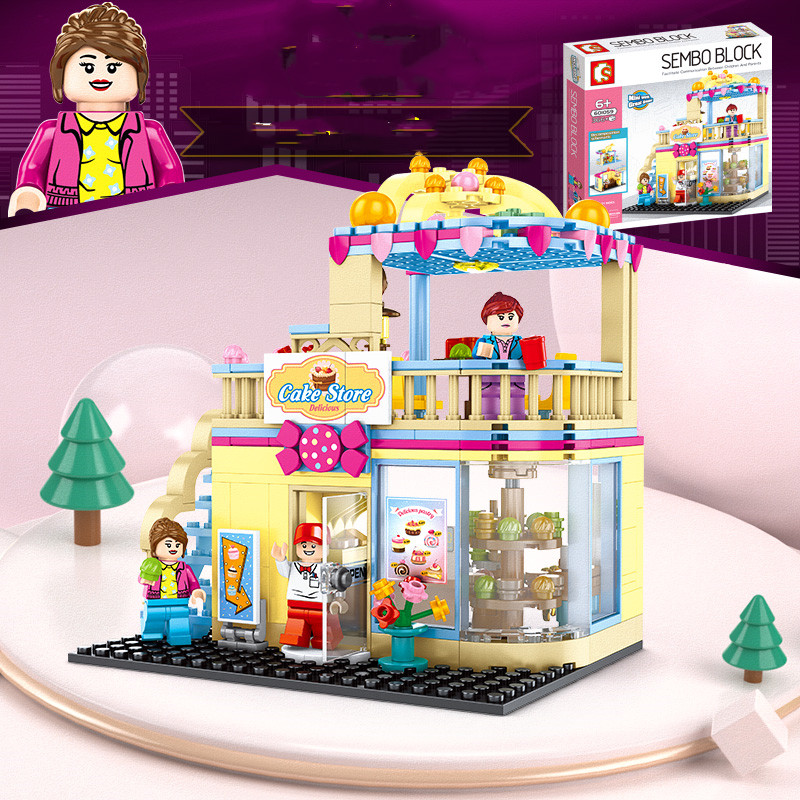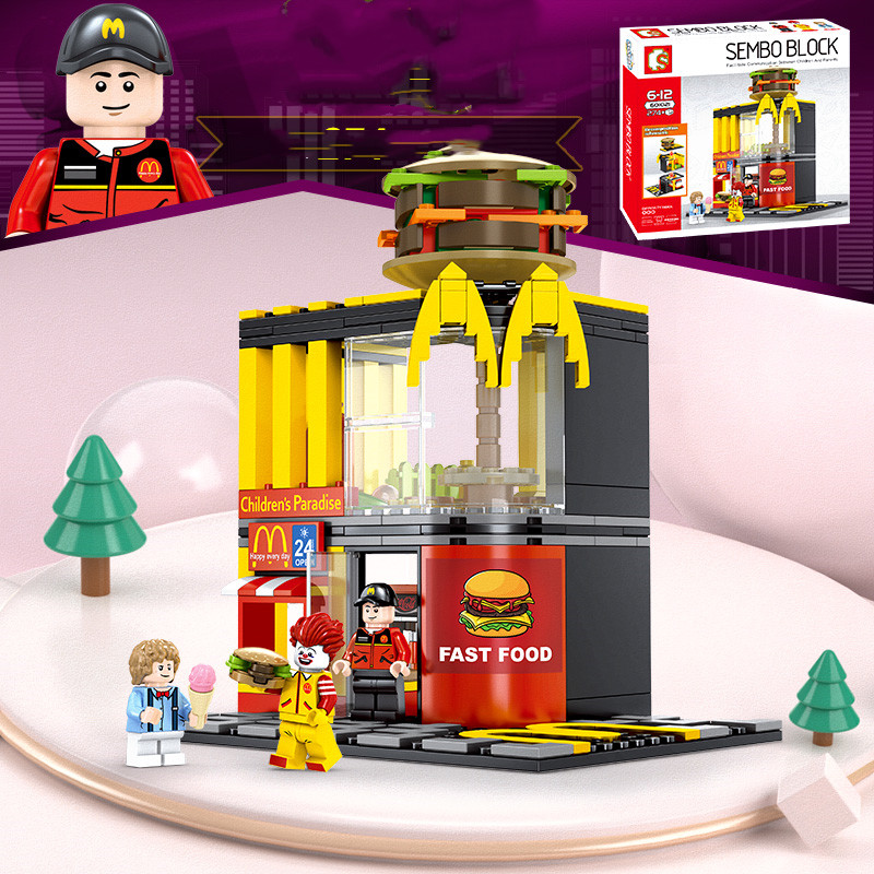 Building block mini city street view hamburger shop small grain puzzle assembly boys girls children building block toys