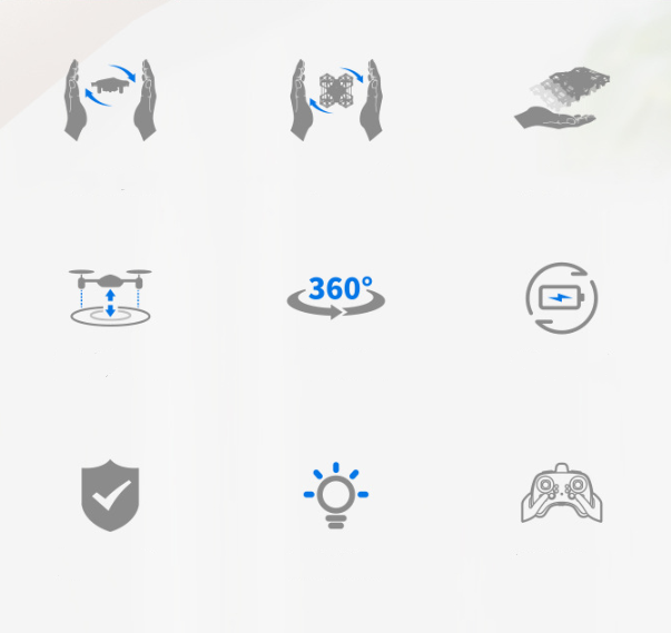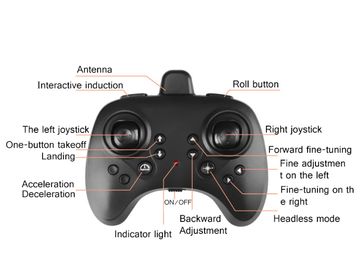 3 fall off take-off sensing mode. Rise and fall Forward Forward Back left fly Right side 360 degree roll Rotate Air pressure set high key One-key frequency One-key takeoff One-touch landing (gesture rotation gesture rollover gesture induction)