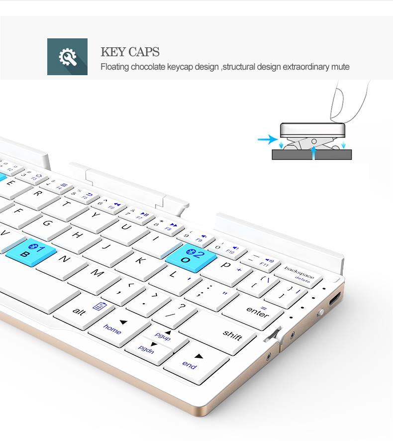 4.Aluminum Alloy Housing with Stand: Unlike other similar design plastic keyboard, this Bluetooth keyboard housing is made of ALUMINUM ALLOY makes it smooth and luxurious.