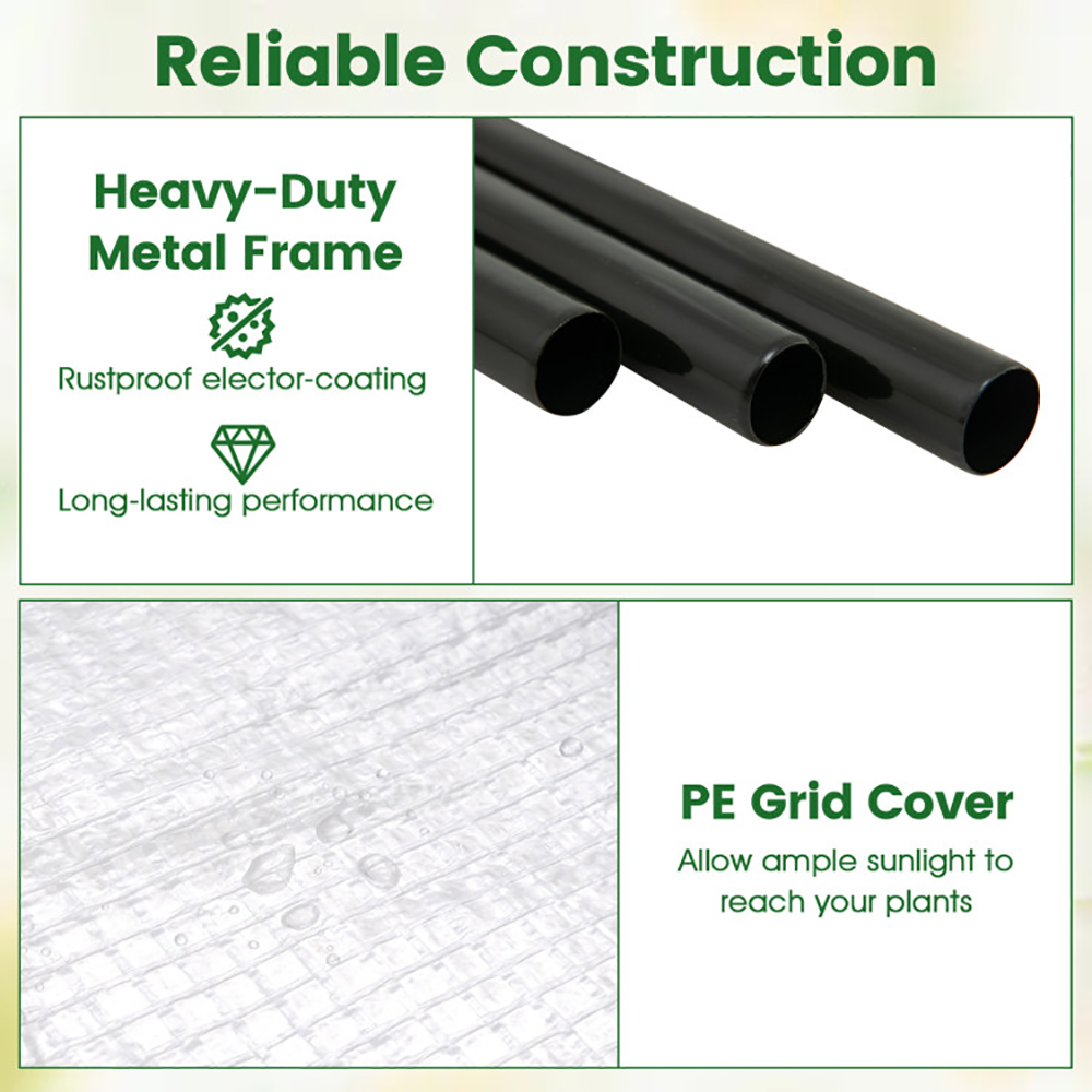 • All-Weather Protection: Enveloped in a premium PE grid cover, this small greenhouse effectively provides sun protection, rain resistance, frost protection, and heat insulation, while keeping small animals away. It is designed to promote healthy growth and extend your growing season.