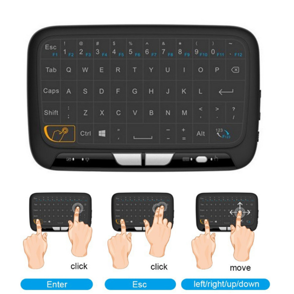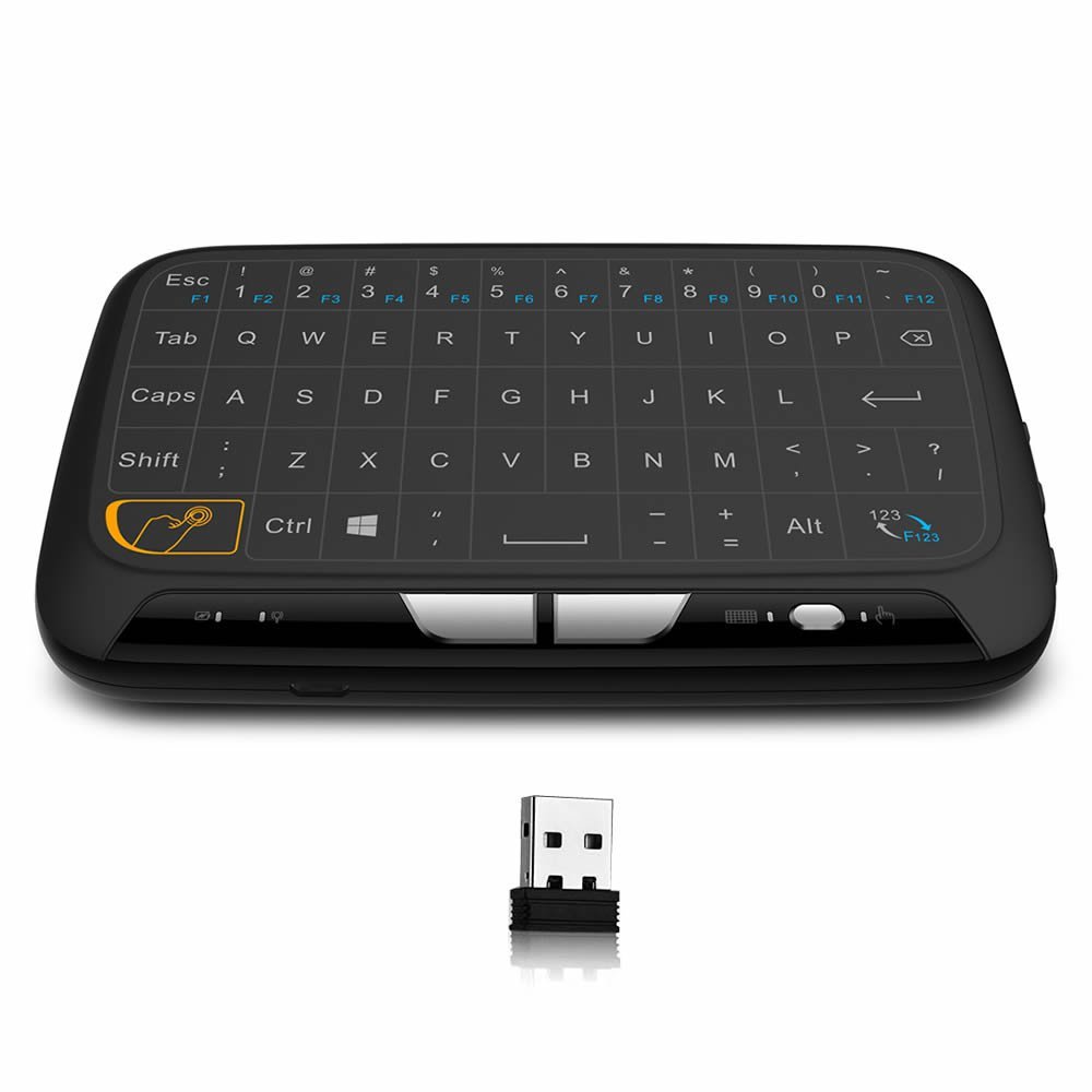 1. Multi-functional 2.4GHz wireless whole panel touchpad and mini QWERTY keyboard with USB interface dongle. Innovative shape, portable, elegant. You can use it for emails, chat , remote control, message input and games