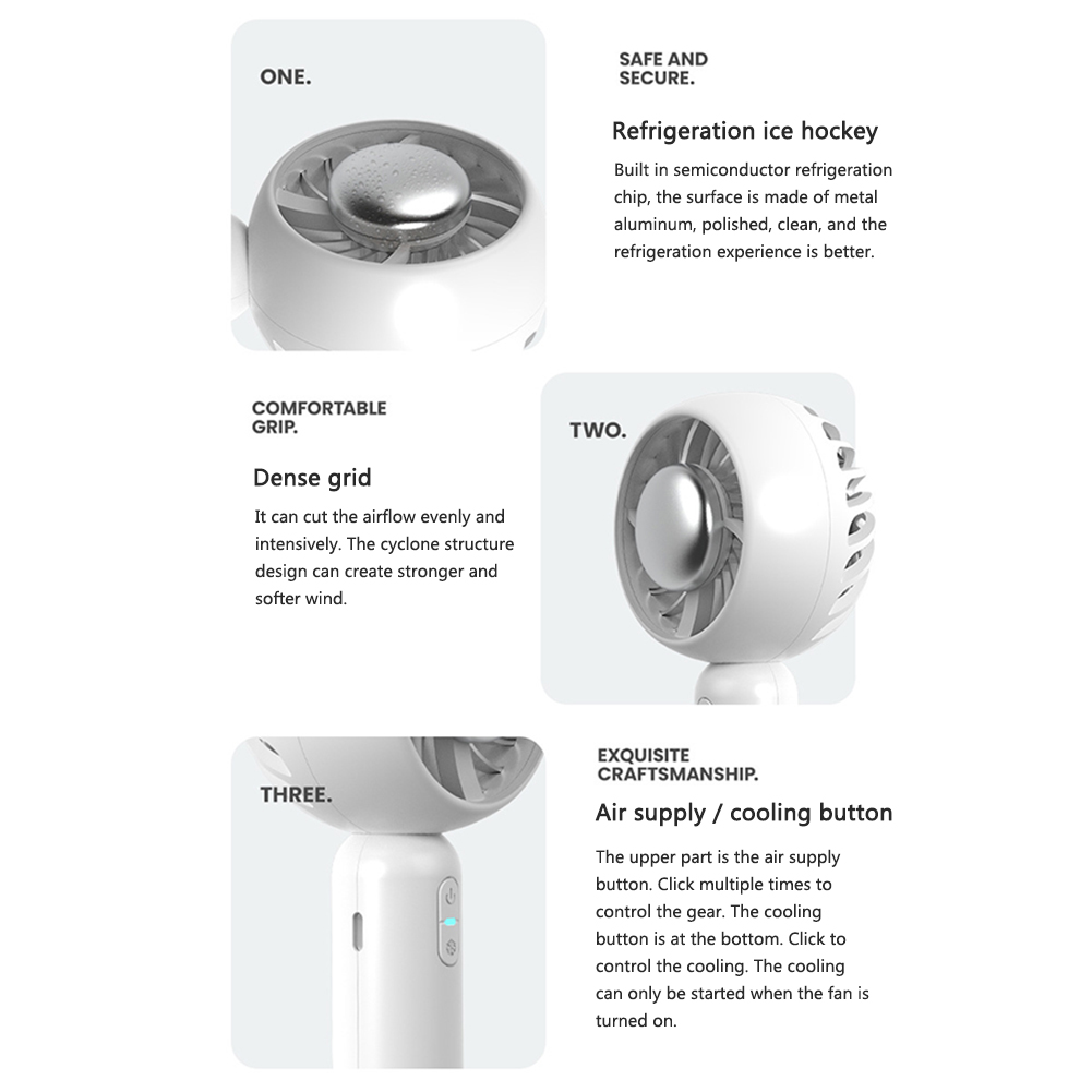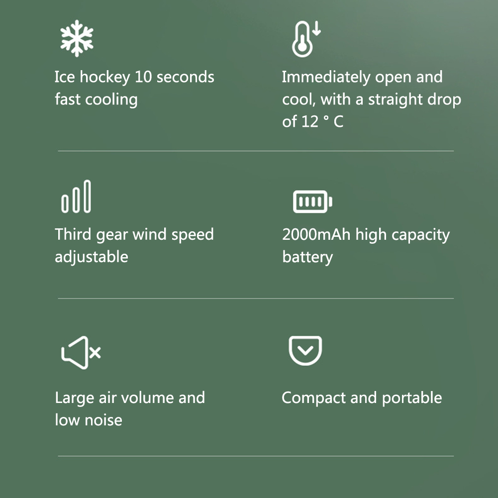 The fan adopts Peltier semiconductor thermoelectric cooling chip, 10s instant to 12℃ iced, which brings you air-conditioning level enjoyment in hot summer, the best gift in summer, having it will have a beautiful and cool summer