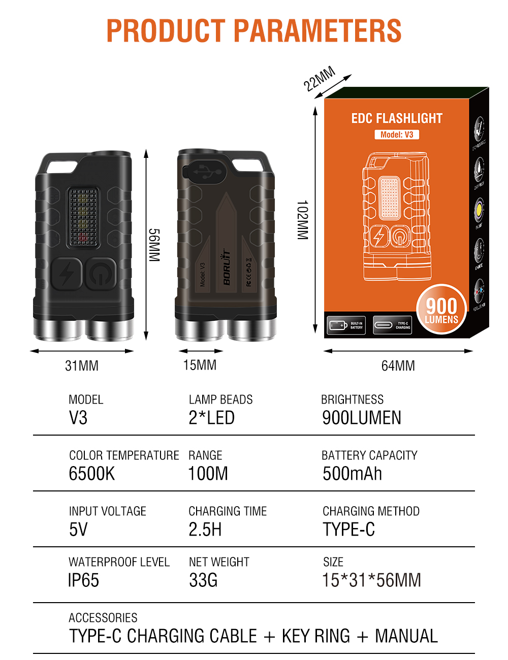 Model: V3 Mini Dual-Head Small Flashlight B Version