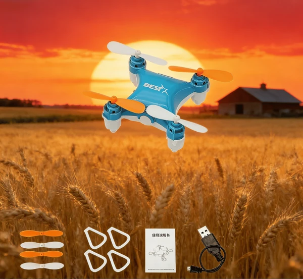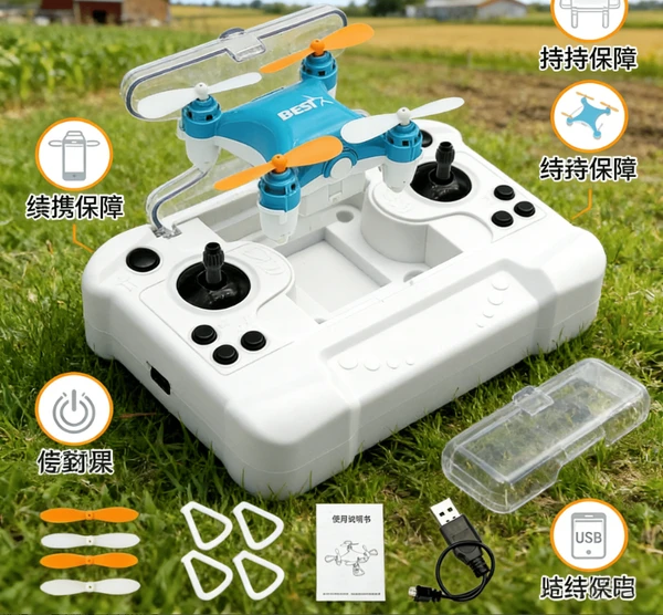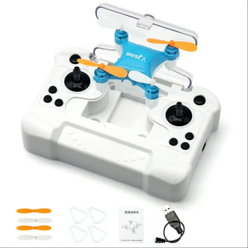 Product Introduction: This mini quadcopter drone is an entry-level aircraft specially designed for children and beginners. Its ultra-compact size allows it to be stored directly inside the remote control, making it easy to carry around and enjoy flying anytime, anywhere. With simple operation, safety, and durability, it is an ideal toy for developing children's spatial awareness and hands-on skills. Key Features: • Portable Storage Design: The drone can be stored directly in the transparent compartment of the remote control. Its small size makes it easy to carry outdoors without the risk of loss. • Beginner-Friendly Operation: Functions such as one-key takeoff/landing, one-key return, and 360° flips lower the barrier to operation, allowing even children to handle it with ease. • Safety Protection Structure: Equipped with propeller guards to effectively prevent damage from collisions during flight and ensure children's hand safety. • Stable Flight Performance: The quadcopter design, combined with hover stabilization technology, enables steady flight both indoors and outdoors, minimizing the risk of loss of control. • Complete Set of Accessories: Includes spare propellers, guards, a USB charging cable, and an instruction manual—ready to use right out of the box. Suitable