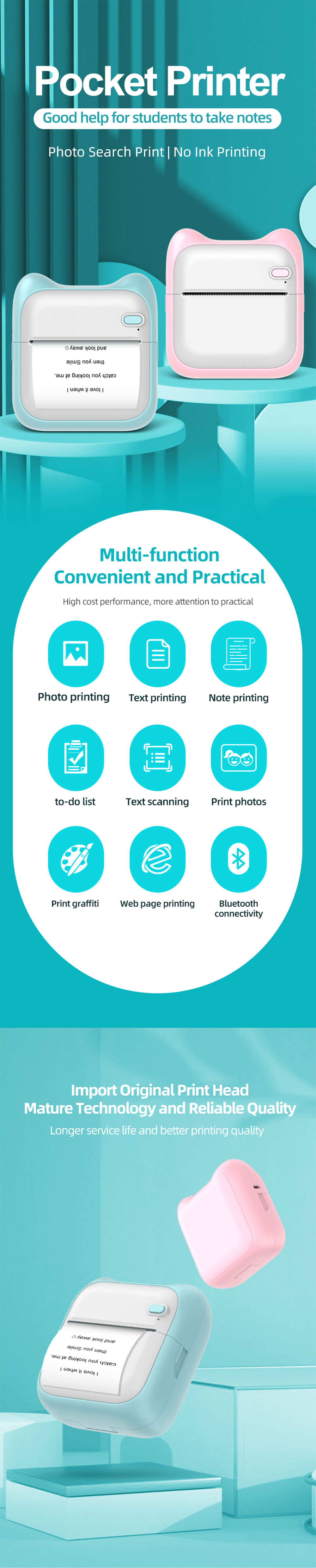 Introducing our Mini Pocket Printer, the perfect companion for students and home use. This portable, small label photo Bluetooth thermal printer offers convenience and versatility for all your printing needs. From printing labels and photos to documents and notes, it's the ultimate printing solution for on-the-go and everyday use.