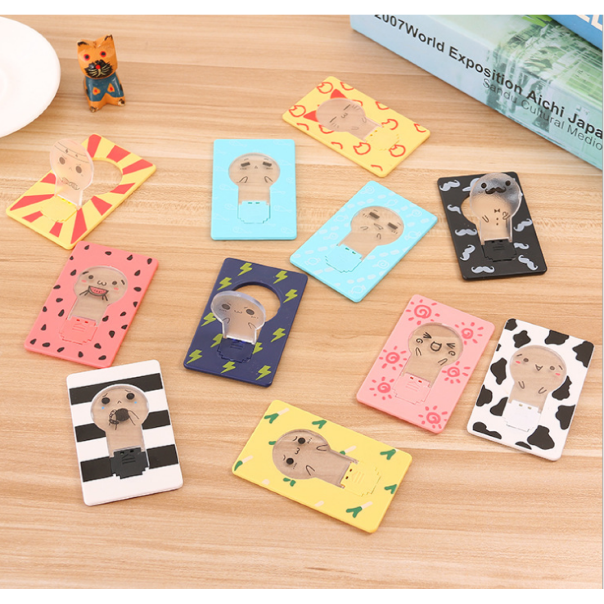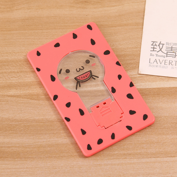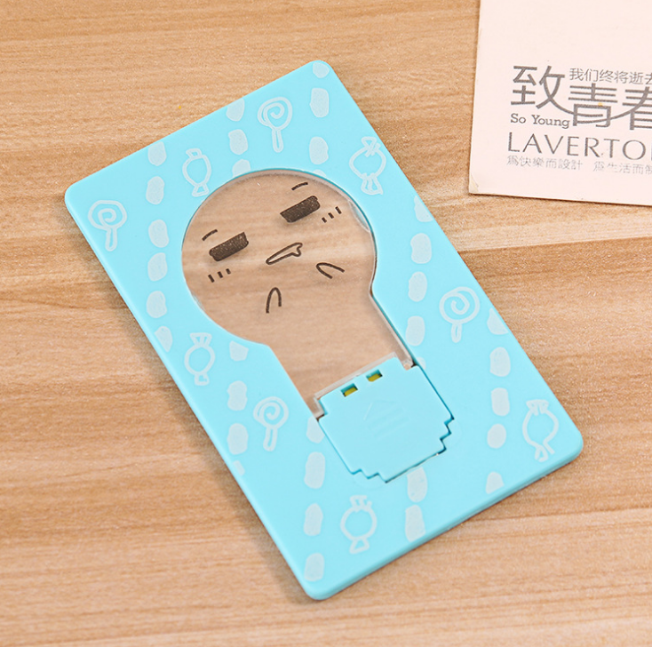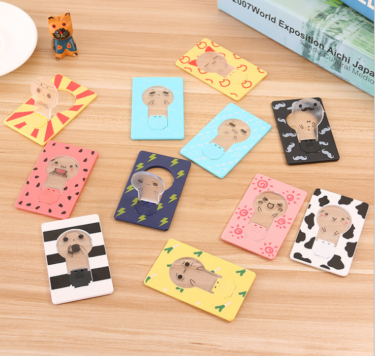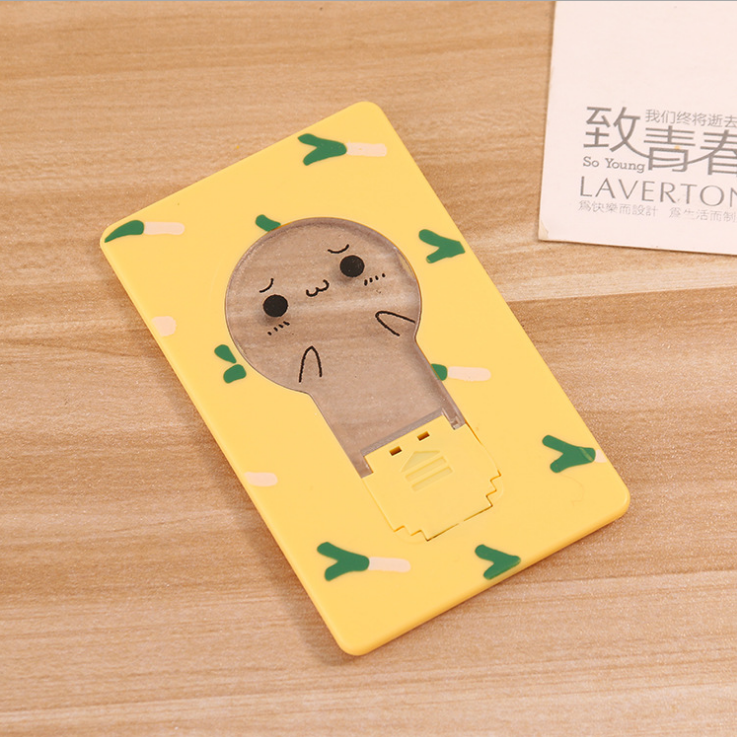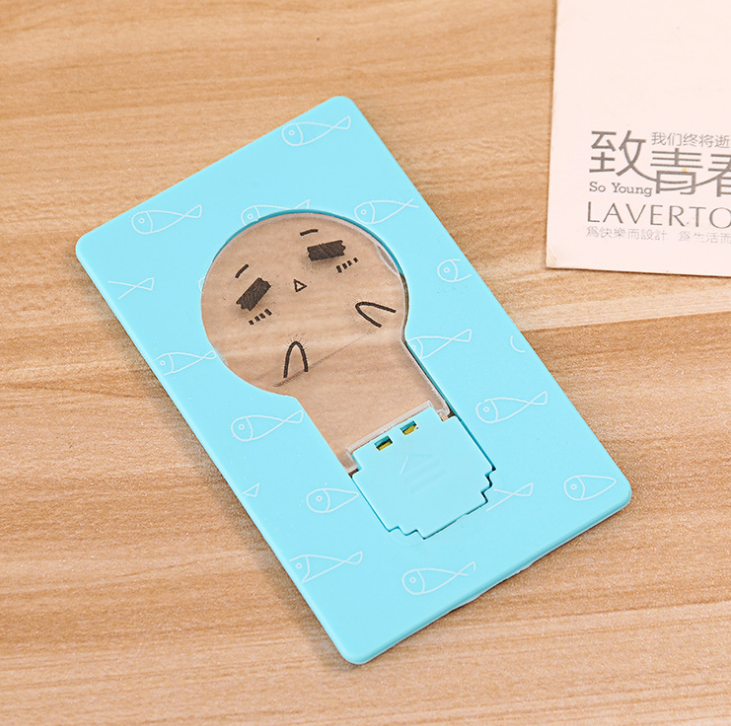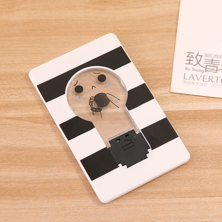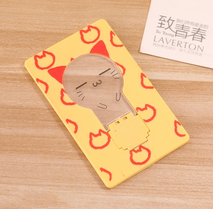 The size same as credit card and no wire needs. It is very convenient because it can place inside the wallet. A such small card may use for illumination, design is so funny. The interior has a LED light bulb, when you need to illuminate, you just fold "Light Bulb" up then the light turns on. If put " light Bulb" down, then the light turns off. You can use it anytime and anywhere!!!