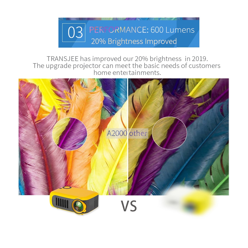 Mini Portable Projector 800 Lumens Eye-Care 1080p LCD 50,000 Hours Lamp Life Home Cinema Video Projector