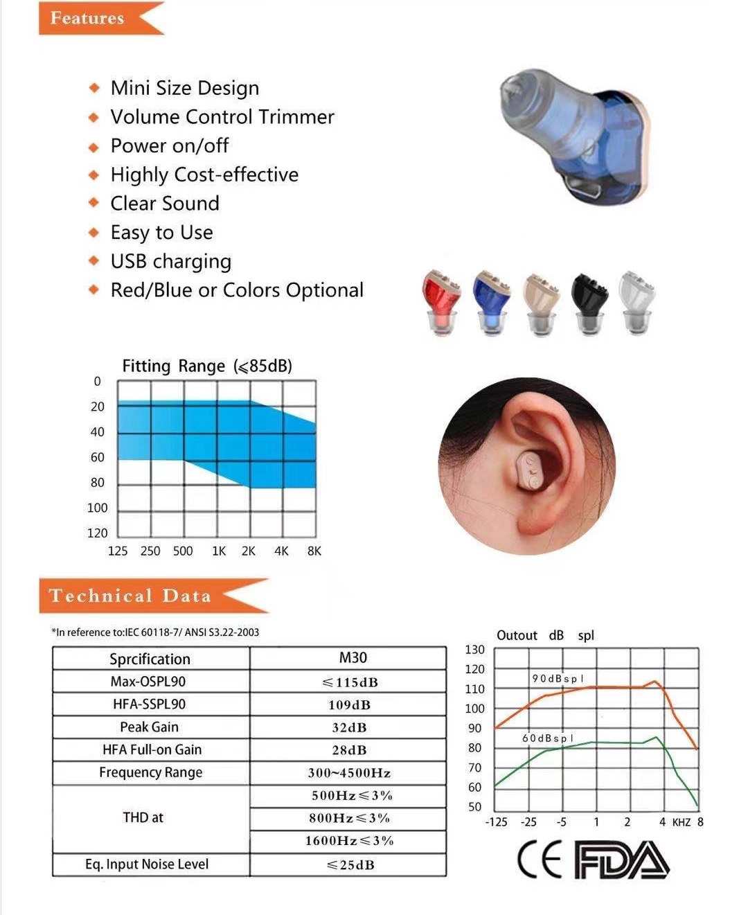 Sound gain: ≥28dB+/-5dB