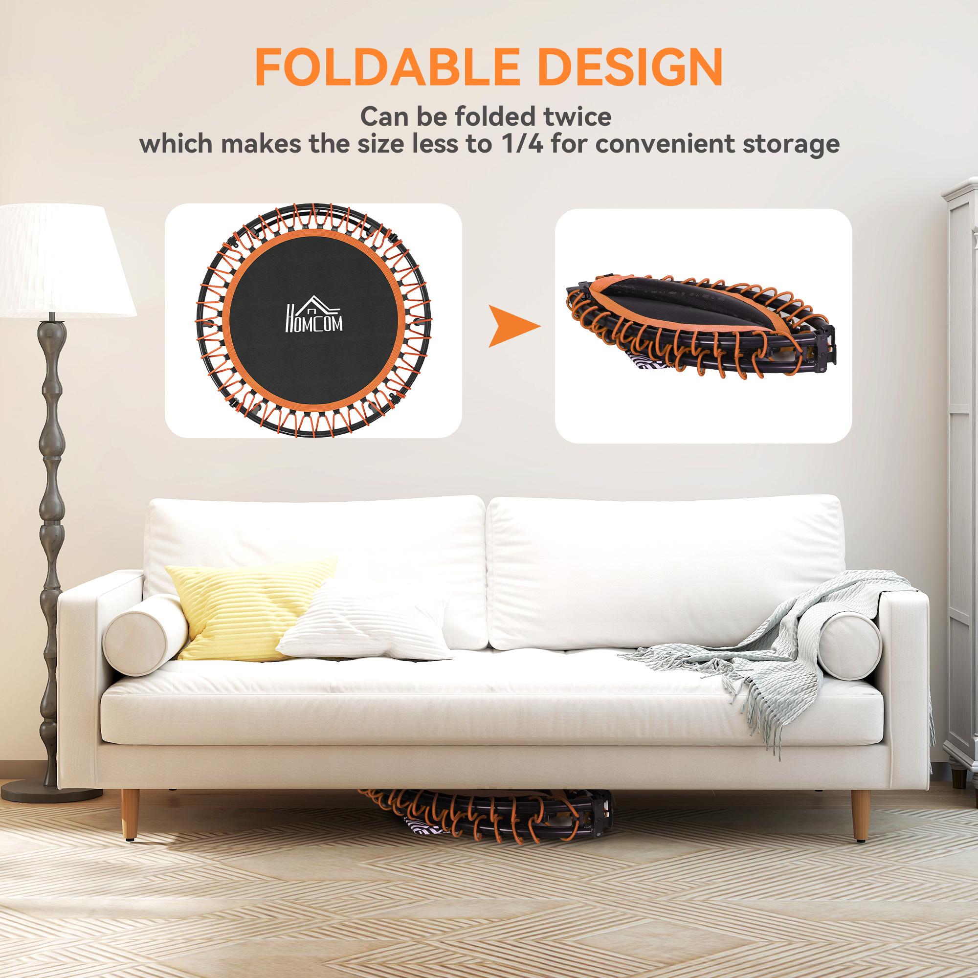 Whether you're looking to exercise inside, outside, or during your lunch break in the office, then this mini foldable trampoline from is great for helping you improve your fitness. Made from steel to support up to 150 kg, with a three-level adjustable T-bar for you to hold on to whilst you work out. It is made with steel legs for balance and stability, whilst the rubber hats help protect your floor beneath from any scratching and damage.