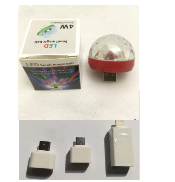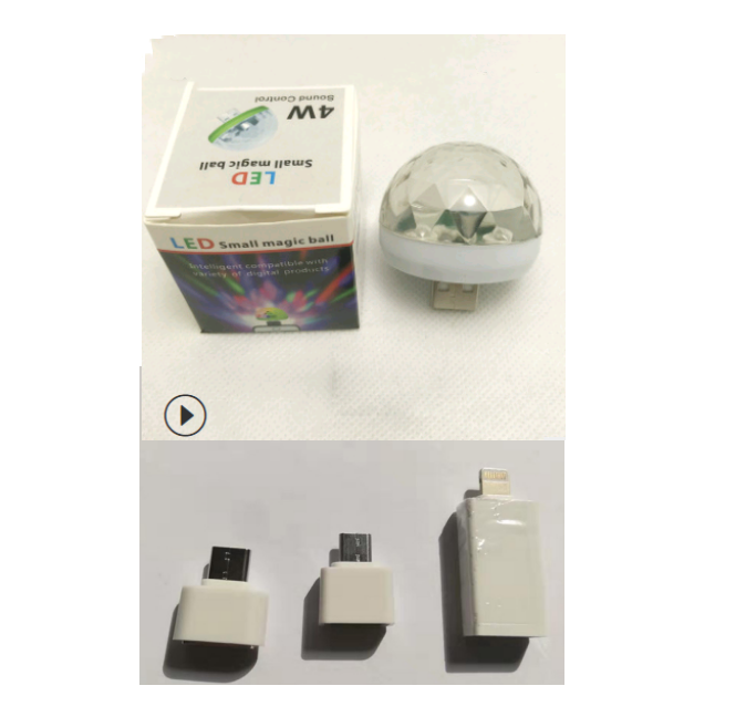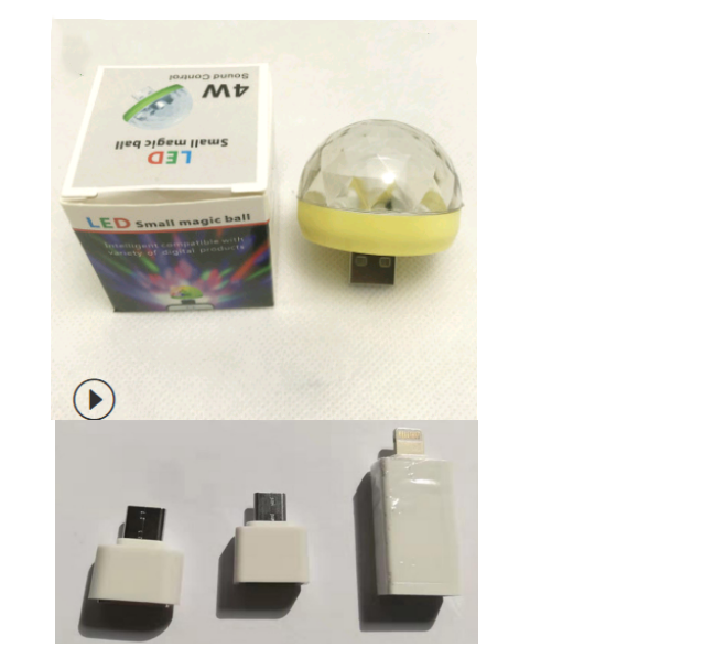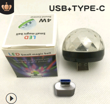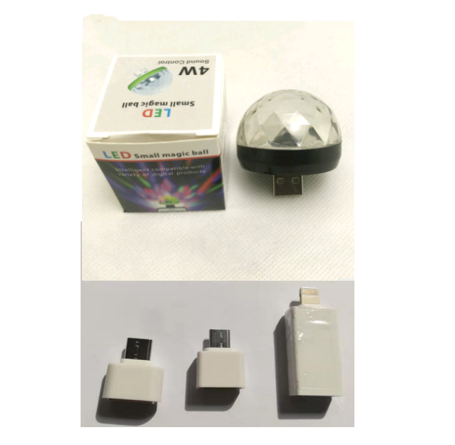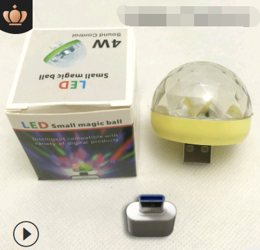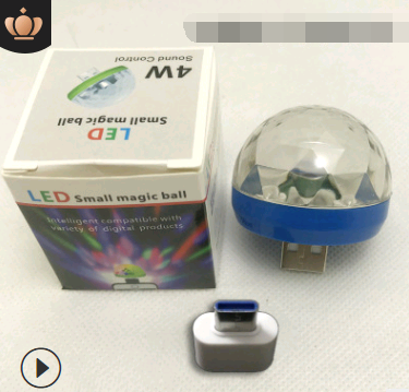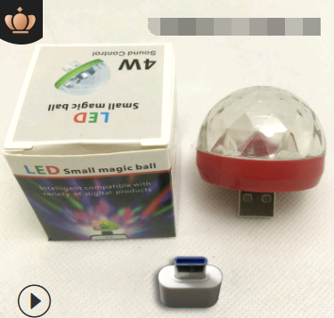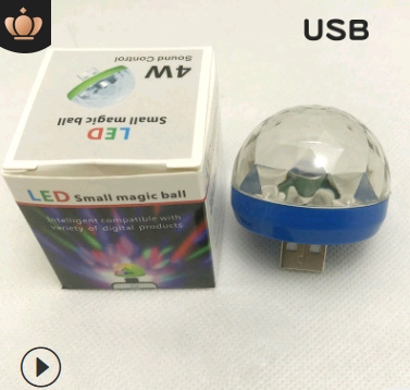 Mini stage lights voice control small magic ball lights RGB mobile phone usb Android rotating stage lights LED lights