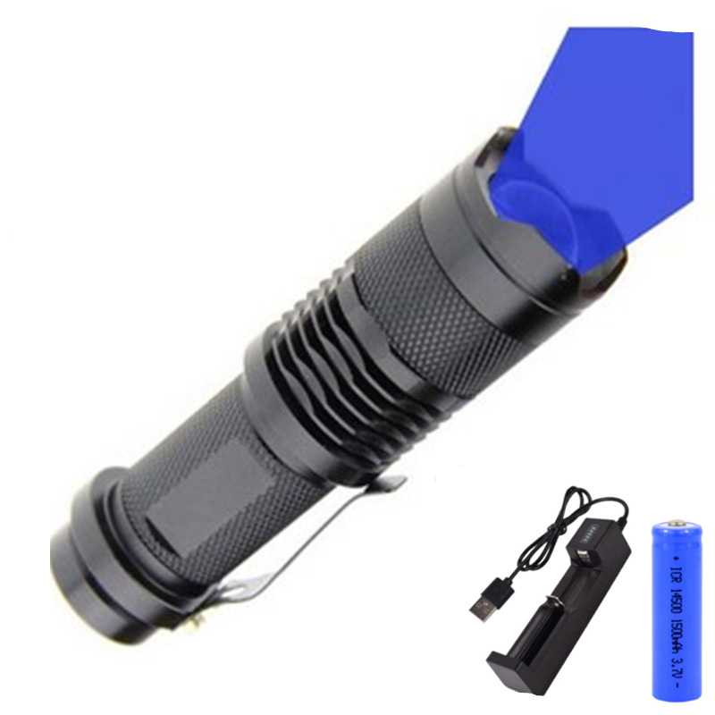 Blue Light flashlight +14500 battery +USB charger