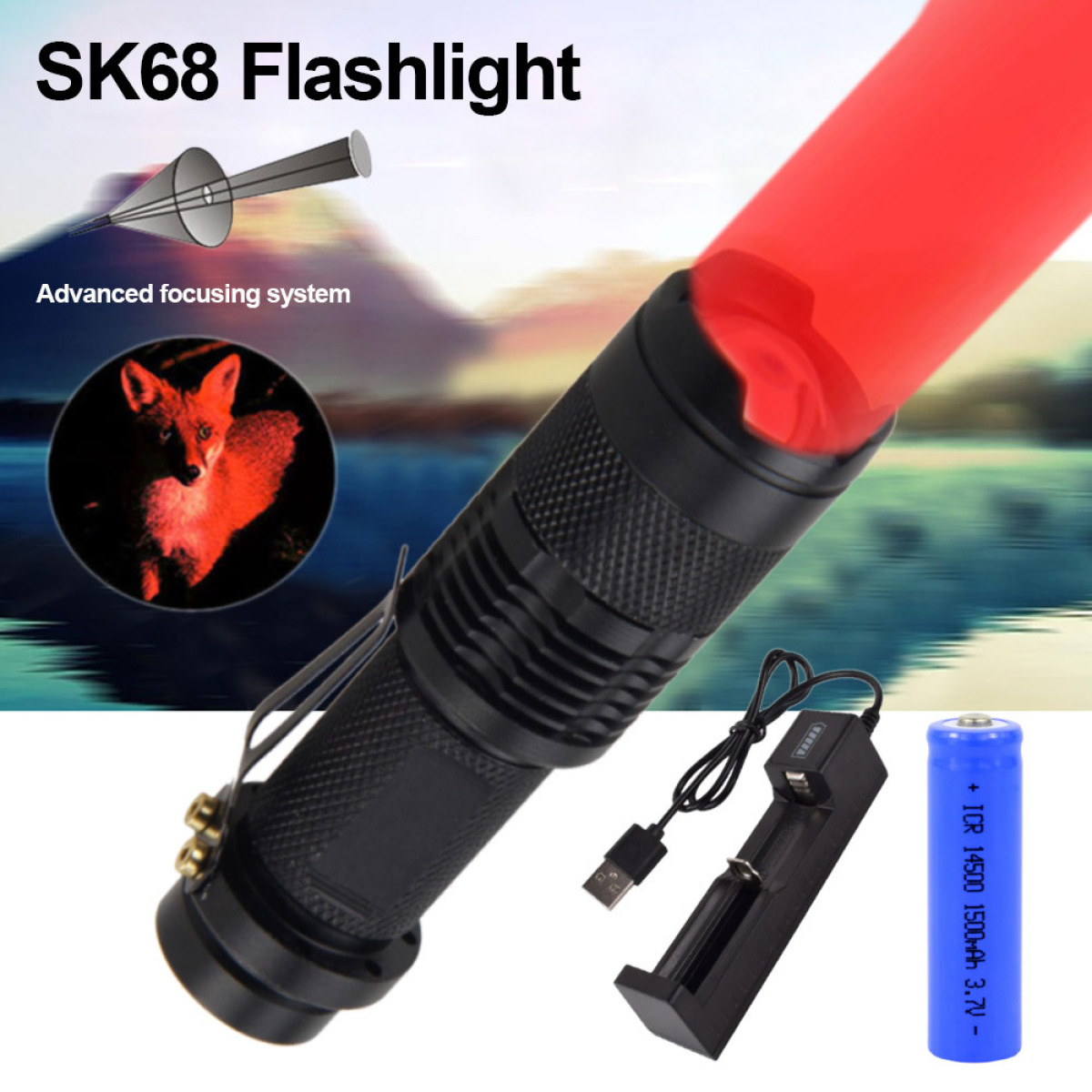 Color:White Light Flashlight [without battery],Red Light Flashlight [without batteries],Green Flashlight [without battery],Blue Light Flashlight [battery free],White light flashlight +14500 battery +USB charger,Red light flashlight +14500 battery +USB charger,Green flashlight +14500 battery +USB charger,