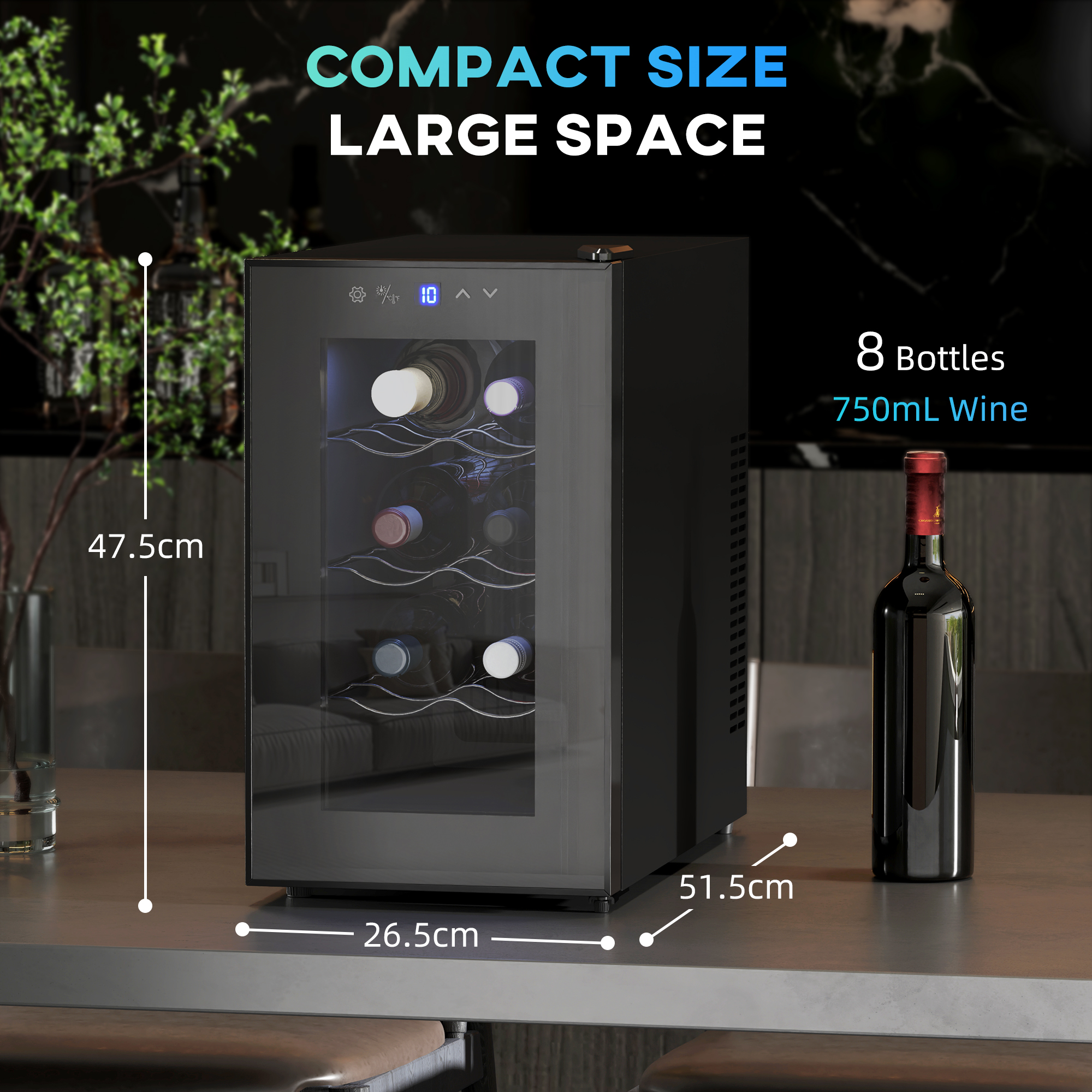 Chill your cherished bottles to perfection in this wine fridge. Three full-length chrome racks hold eight bottles; also adjustable to fit larger bottles when needed. Adjust the temperature between 8-18℃ to find the coolness best for you. Complete with a triple glass door, which is also resistant to damaging UV rays.