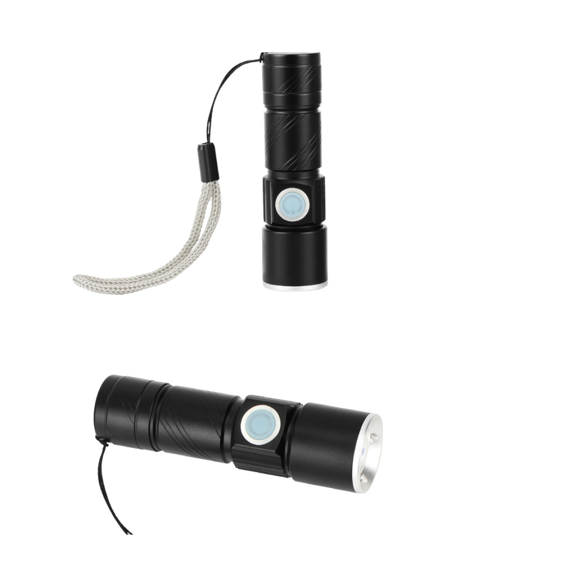 [Features and uses]: Standard USB interface charging, integrated lamp body, safe, worry-free, built-in 14500 lithium battery, no need to buy batteries and chargers, telescopic zoom, convenient and concise. The aviation aluminum alloy material is selected as the main material of the lamp body, which has strong pressure resistance, anti-corrosion feeding, comfortable hand feeling, and rubber waterproof switch, which is both a switch and a charging indicator light. It is especially suitable for home-time photo-taking or as a holiday gift promotion.