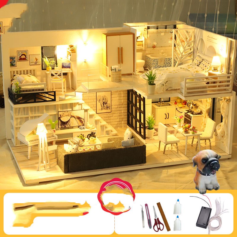 White With Cover:Simple + Pet Dog + Dust Cover + Tool Glue
