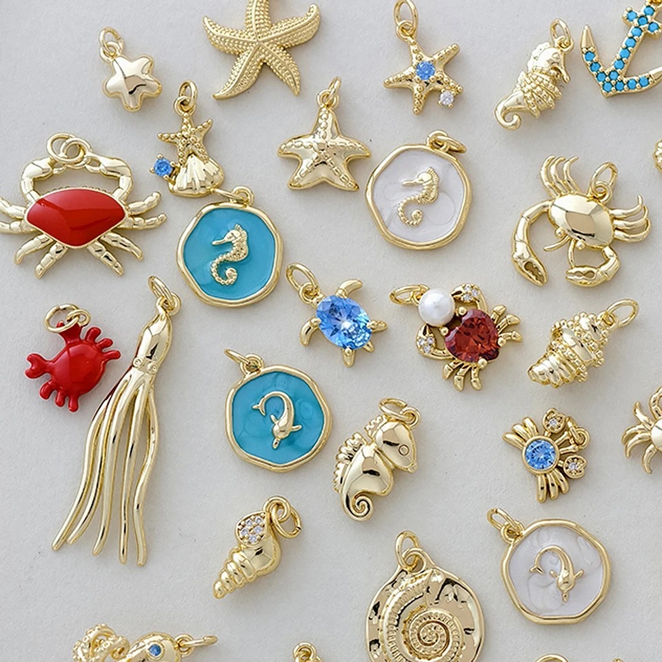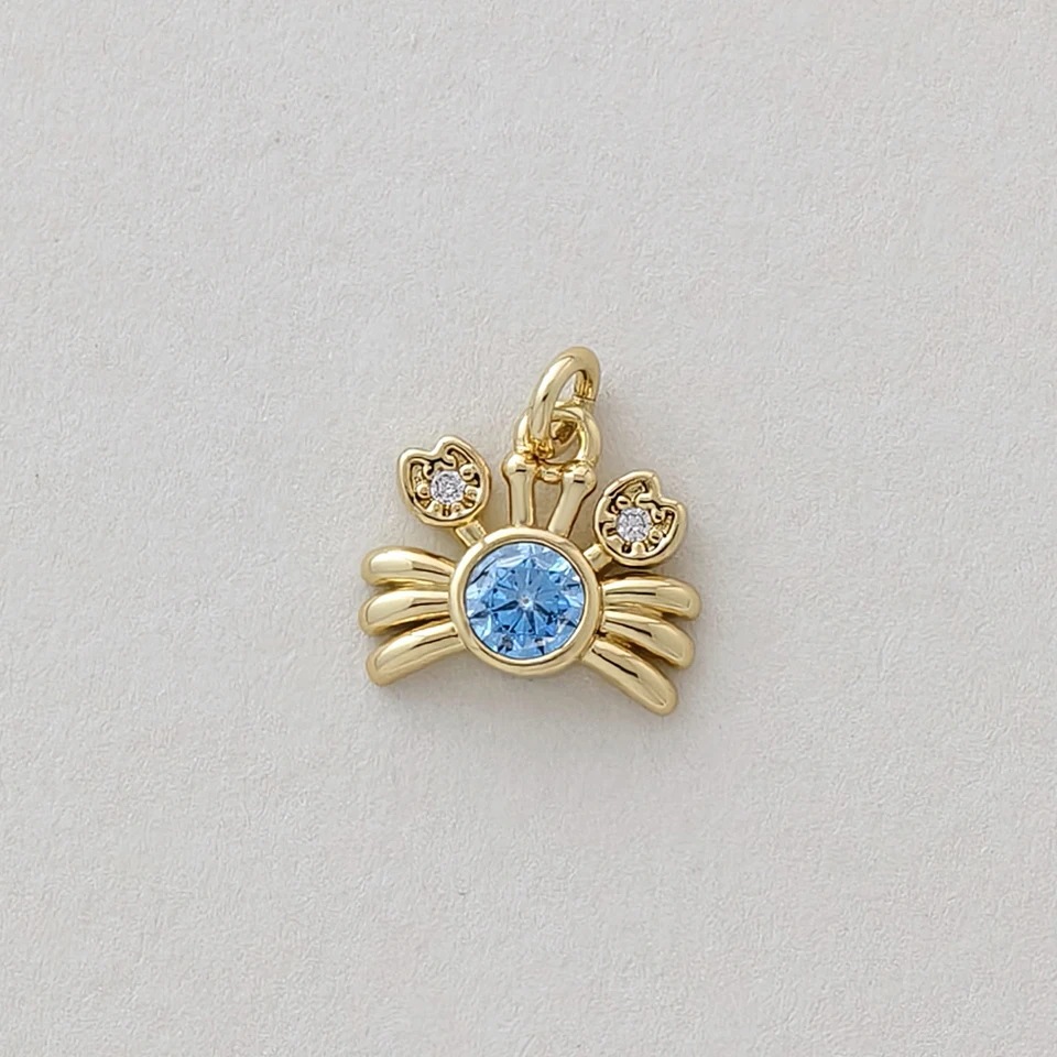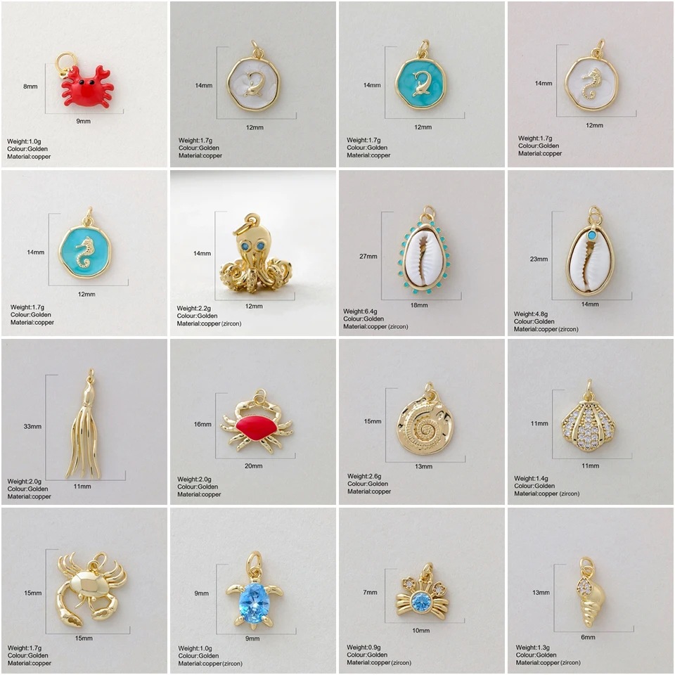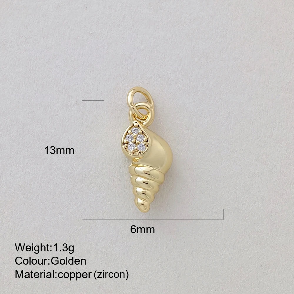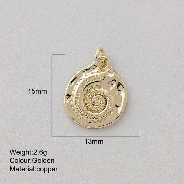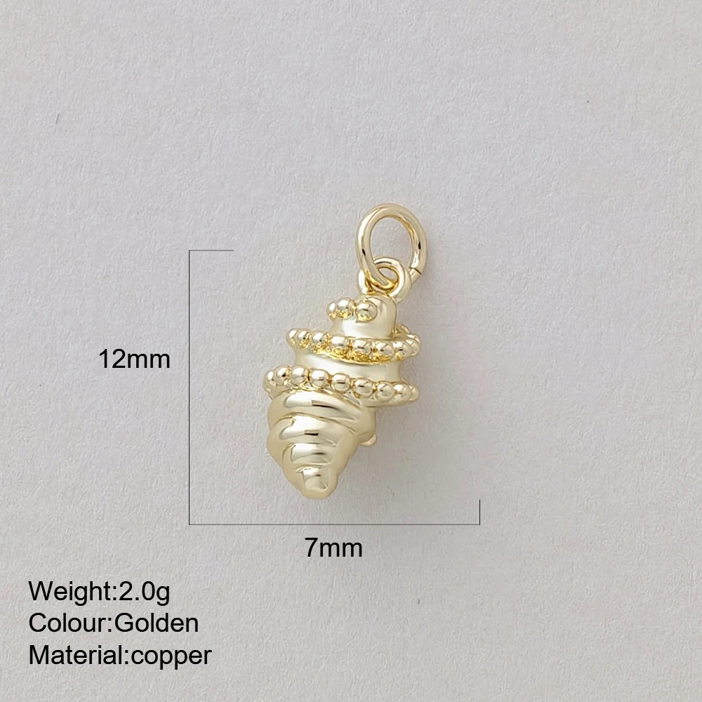 Miniature Marine Animal Crab And Conch Shell Golden Copper Pendant
