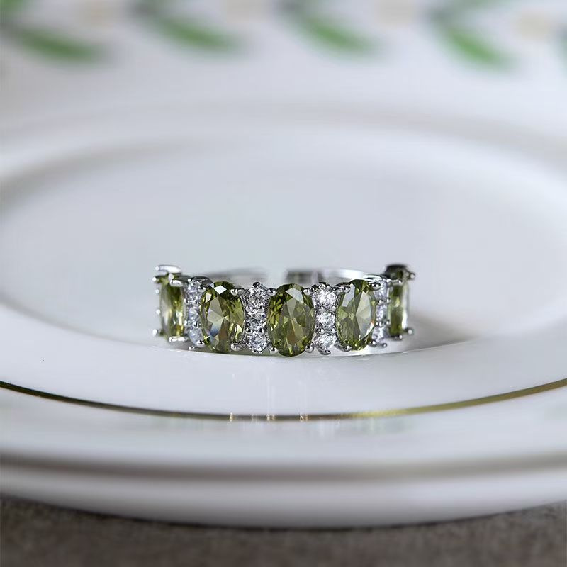 Minimalist Olive Green Gemstone Open Ring, Dainty Silver Jewelry For Women