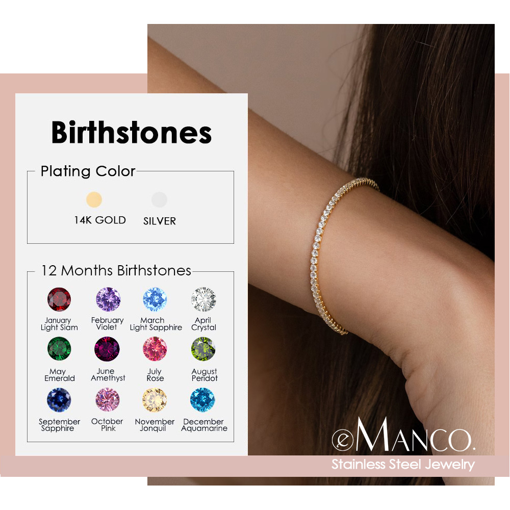 Colors: January Red Gold, January Red Steel; February Purple Gold, February Purple Steel; March Light Blue Gold, March Light Blue Steel; April Platinum, April White Steel; May Green Gold, May Green Steel; June Purple Gold, June Purple Steel; July Rose Gold, July Rose Steel; August Light Green Gold, August Light Green Steel; September Sapphire Blue Gold, September Sapphire Blue Steel; October Pink Gold, October Pink Steel; November Light Yellow Gold, November Light Yellow Steel; December Lake Blue Gold, December Lake Blue Steel