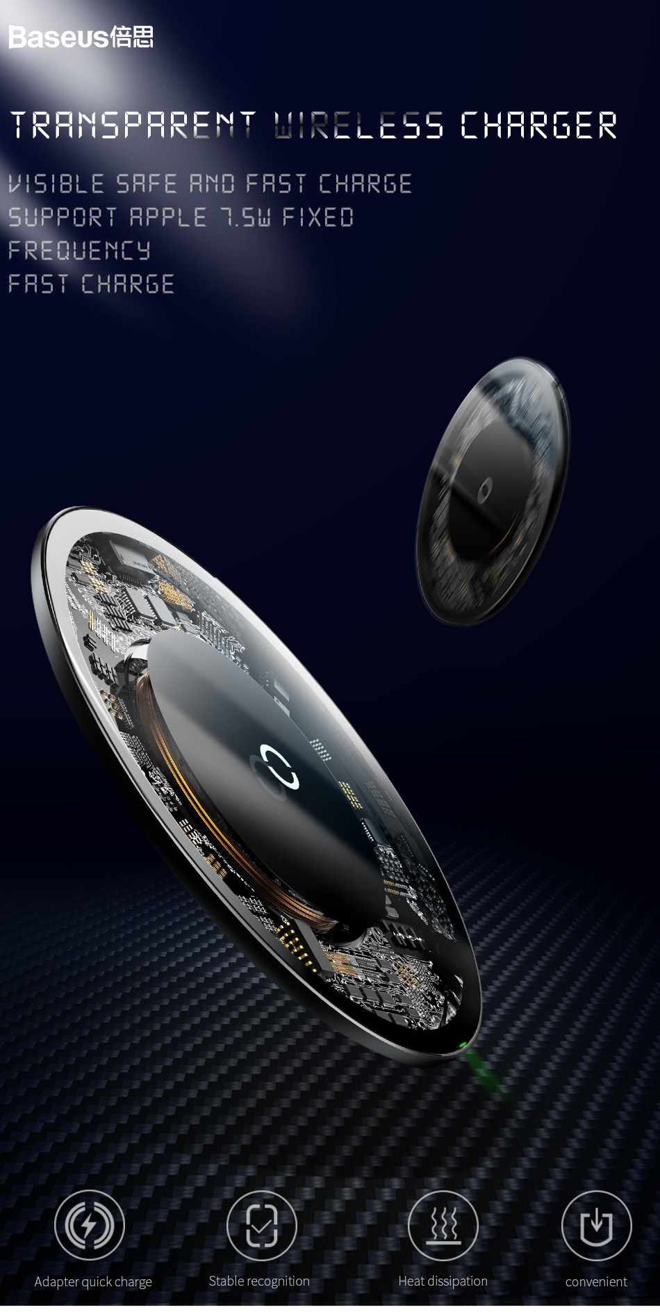 Minimalist Wireless Charger Ultra-thin Portable Glass Transparent Mobile Phone Fast Charging Wireless Charging
