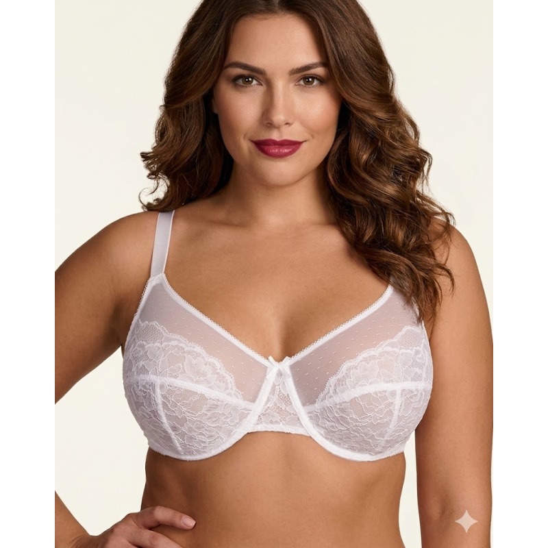 Full Coverage Bras for Full Figure Women: Floral lace combined with semi-sheer tulle provides sexy containment and full support up to the I cup.