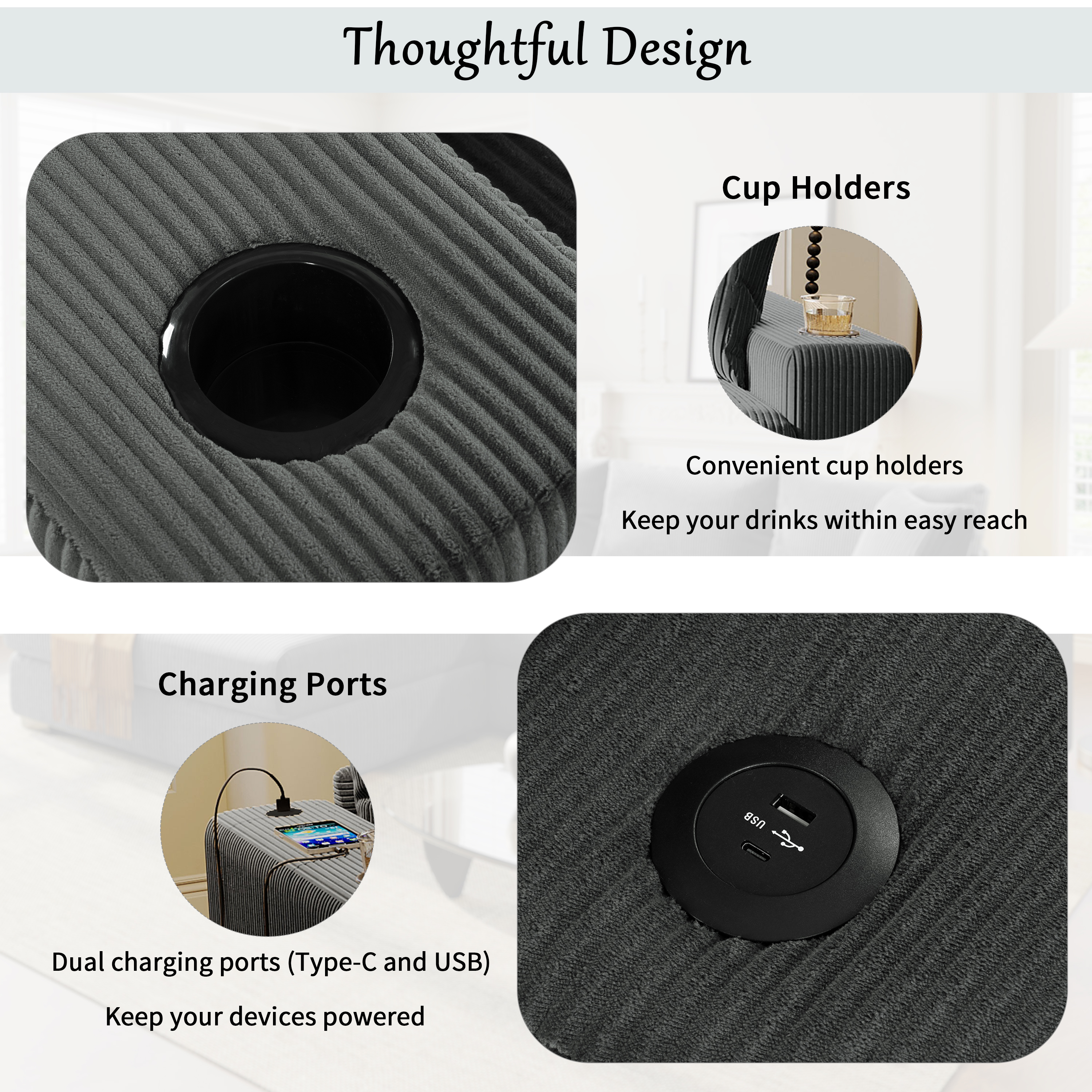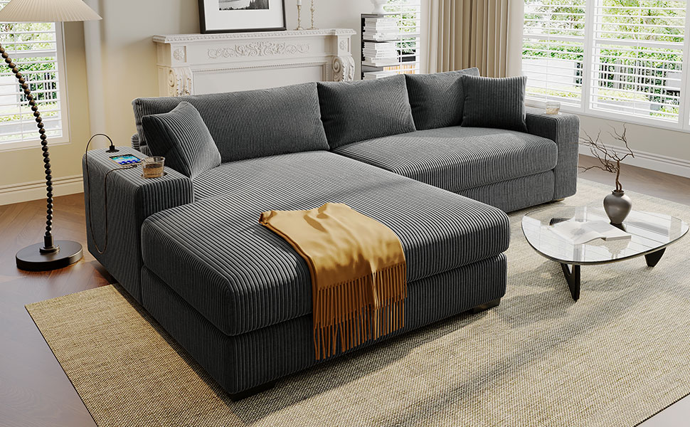 Product Name:Mirod Large Sectional Sofa with Thick Cushions, and Built-in Cup Holders & Charging Ports