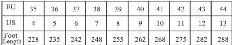 Size: 36, 37, 38, 39, 40, 41, 42, 43, 44, 45, 46