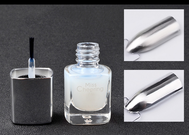 This mirror nail polish uses water-soluble pure silver paste, and the texture is thinner than ordinary nail polish (PS: many people think it is too thin hence the quality is not good) On the contrary, if you buy thick nail polish, then congratulations, what you bought is low-cost ordinary metallic silver nail polish.