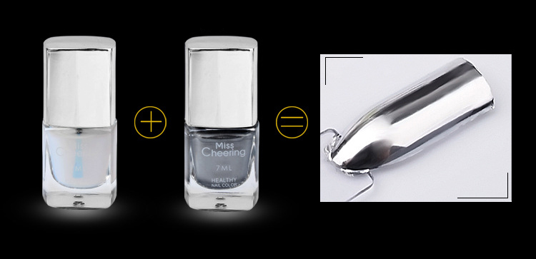 2.for better mirror result, using the base coat and wait dry for 2-3 mins before appling the silver nail polish