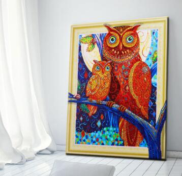 Mit Perlen - Die Eulen Family - Diamond Painting
