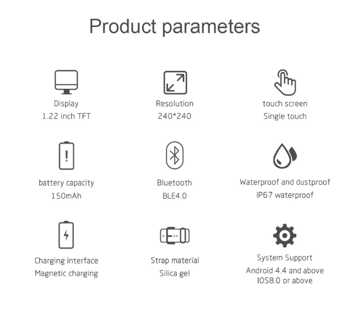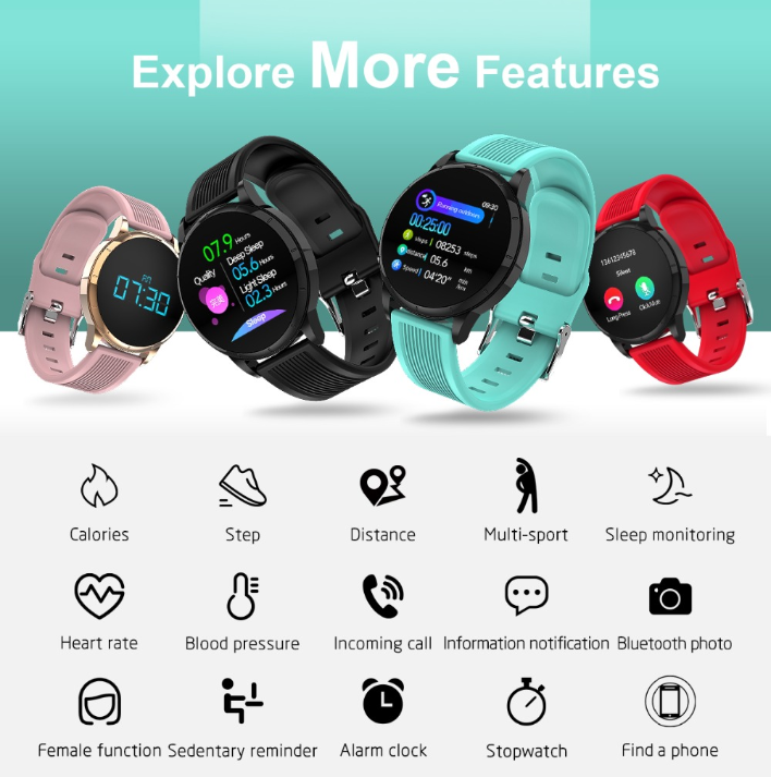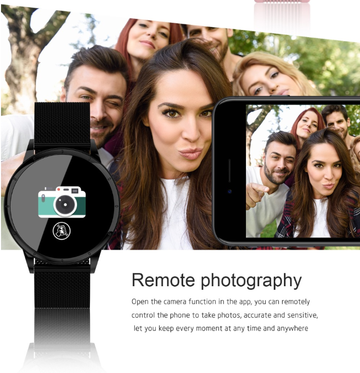 3. Other functions: intelligent anti-lost, Shake to take photos, do not disturb mode, raise hand to bright screen,long press to reject incoming calls,WeChat sport,for apple health, etc.