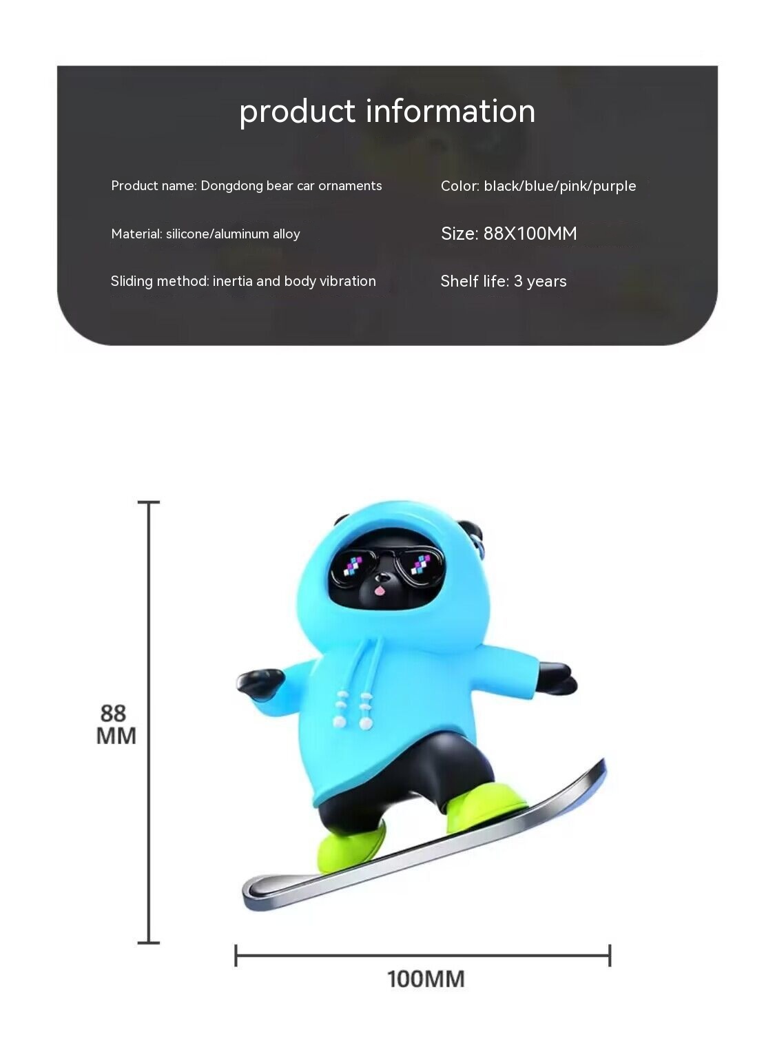 Color classification: cartoon moving bear [cherry blossom pink] cute ornaments, cartoon moving bear [Sky Blue] cute ornaments, cartoon moving bear [Rose Red] cute ornaments, cartoon moving bear [advanced black] cute ornaments