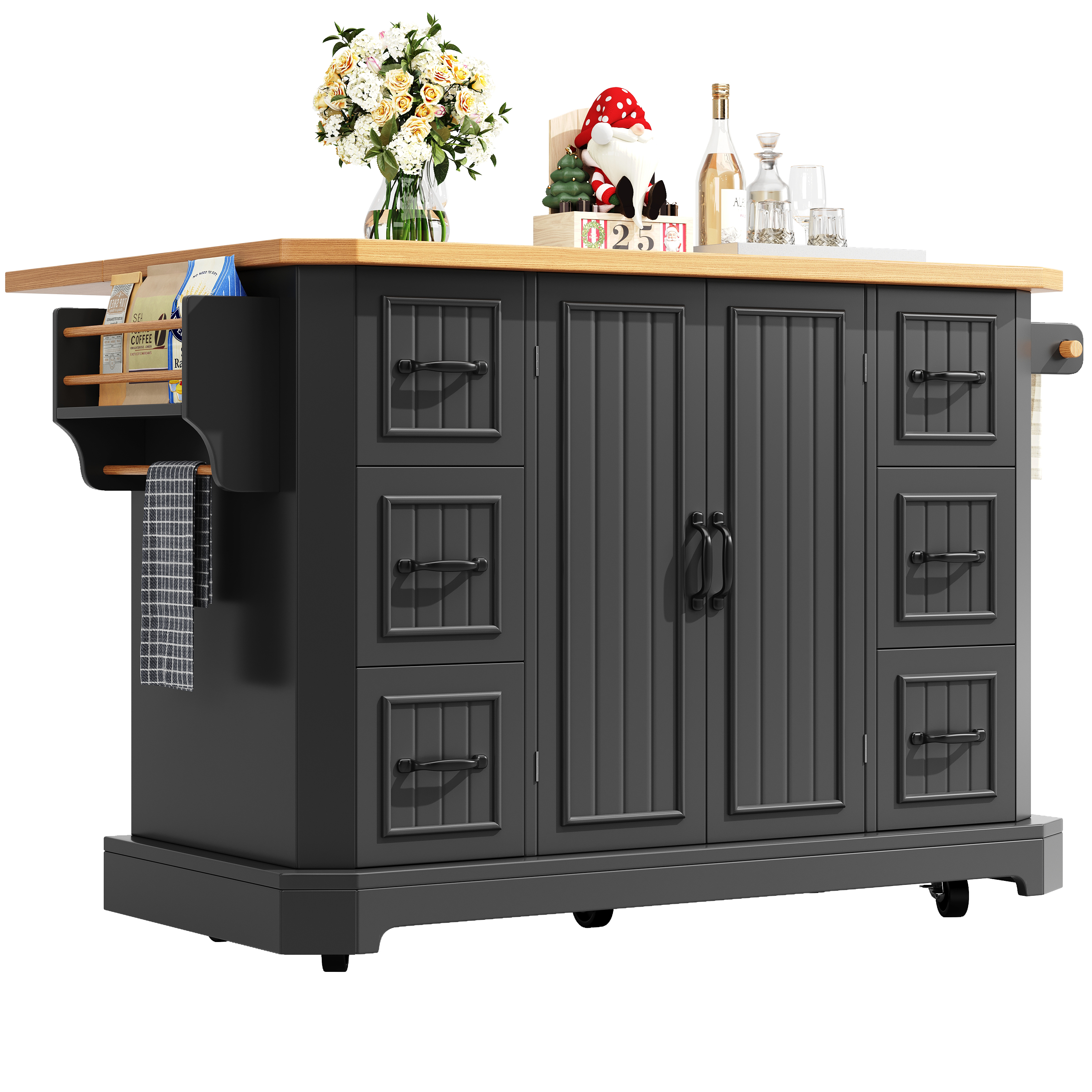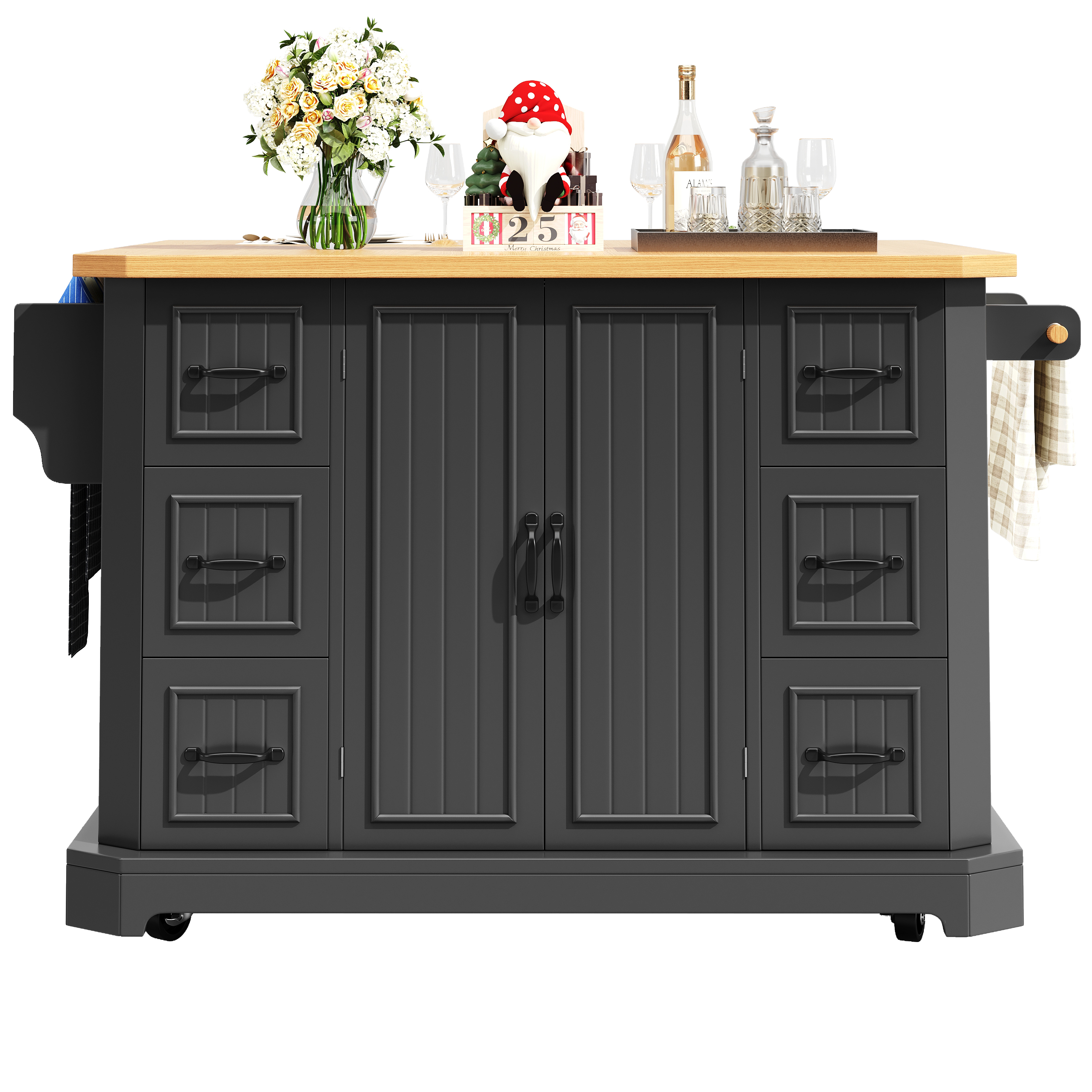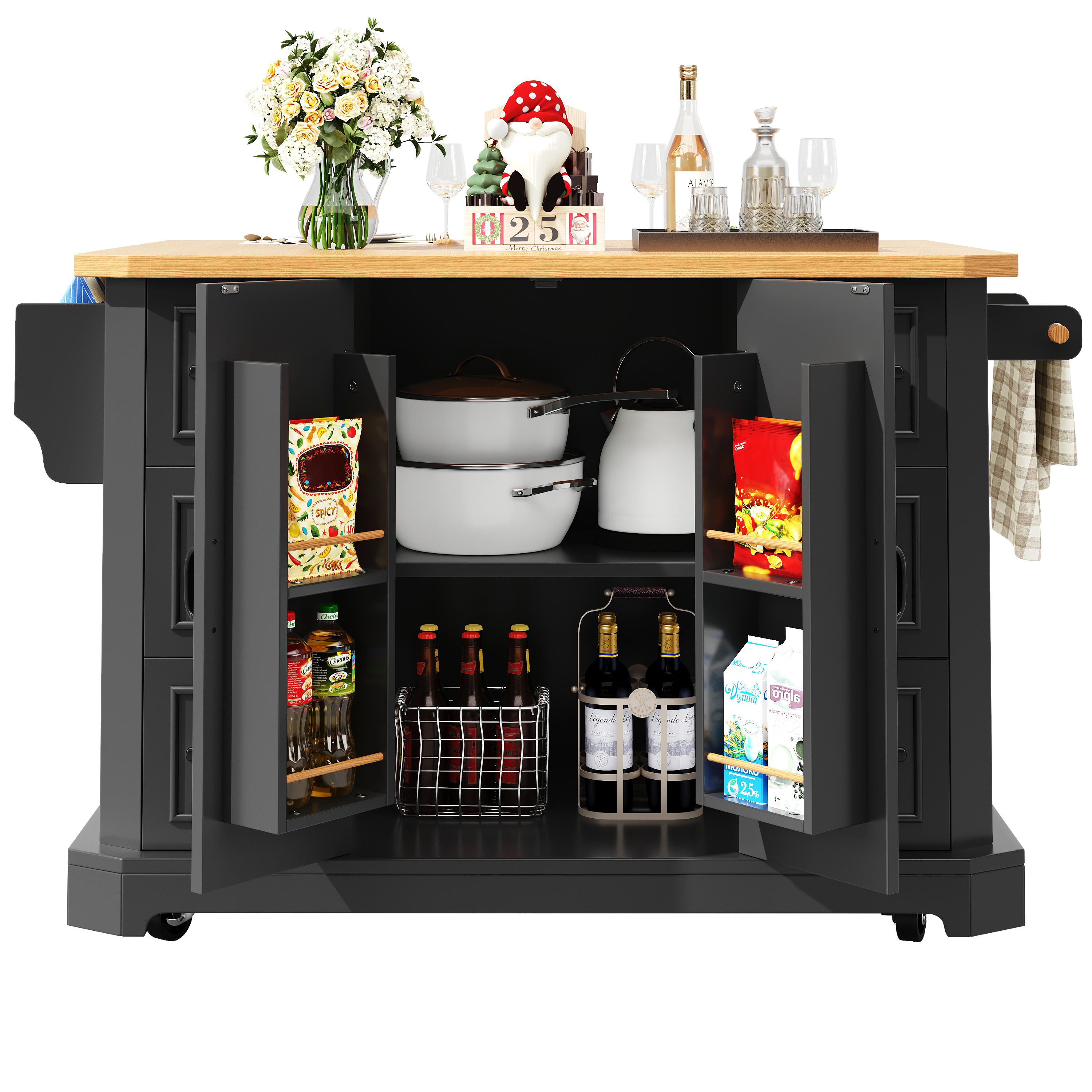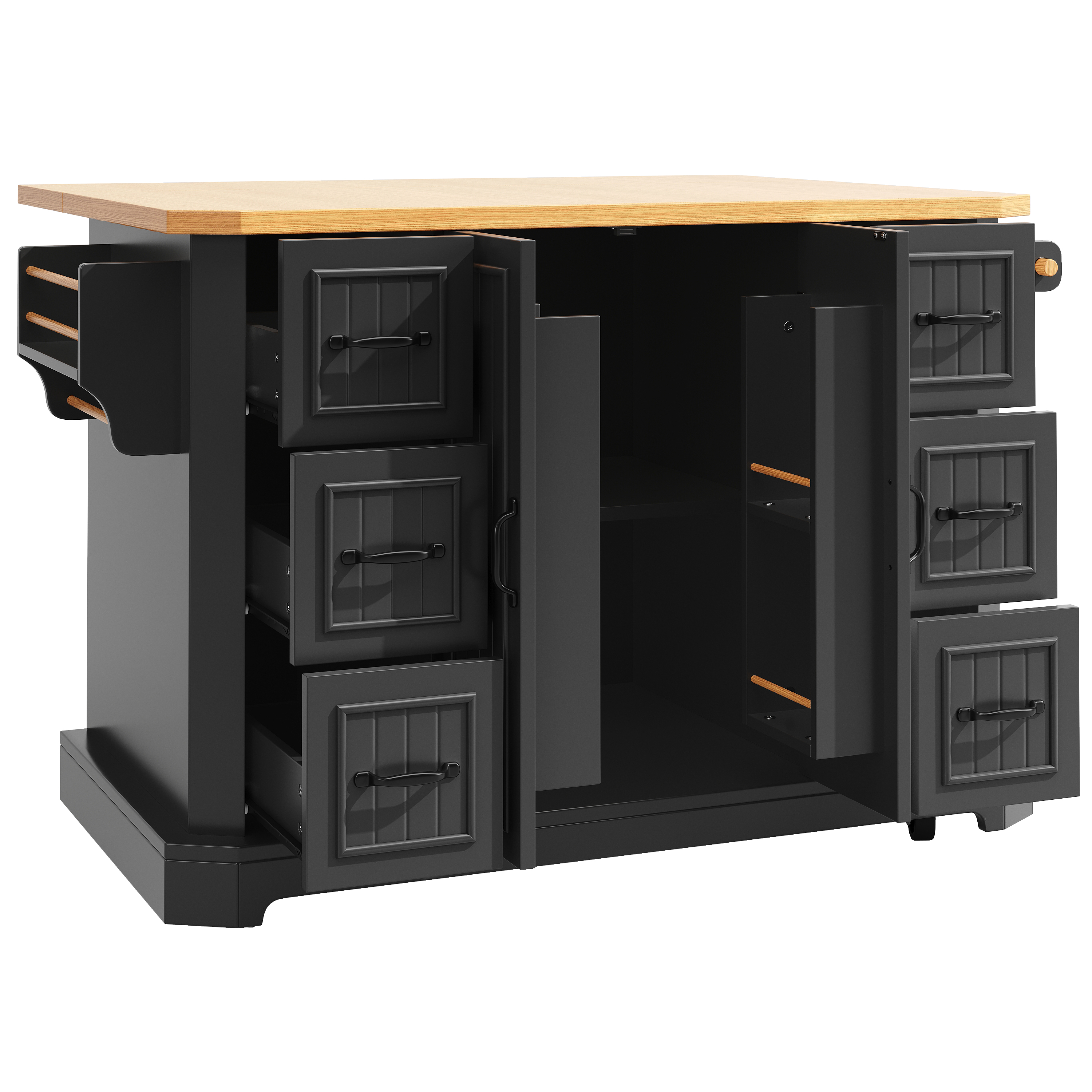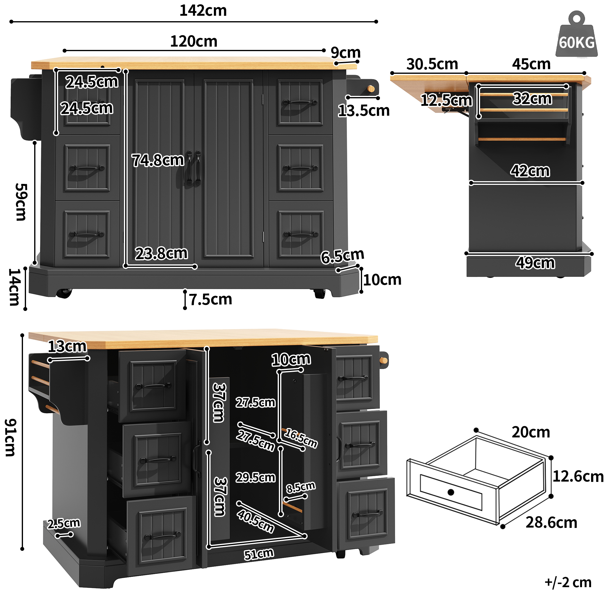Product Name:Mobile Kitchen Island Cart on Wheels - Cabinet with 2 Doors & 6 Drawers, Adjustable Width 45-75cm, White/Black