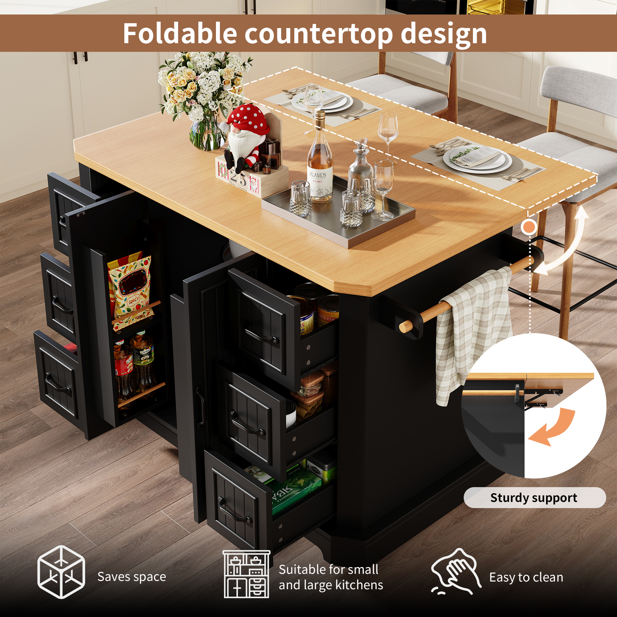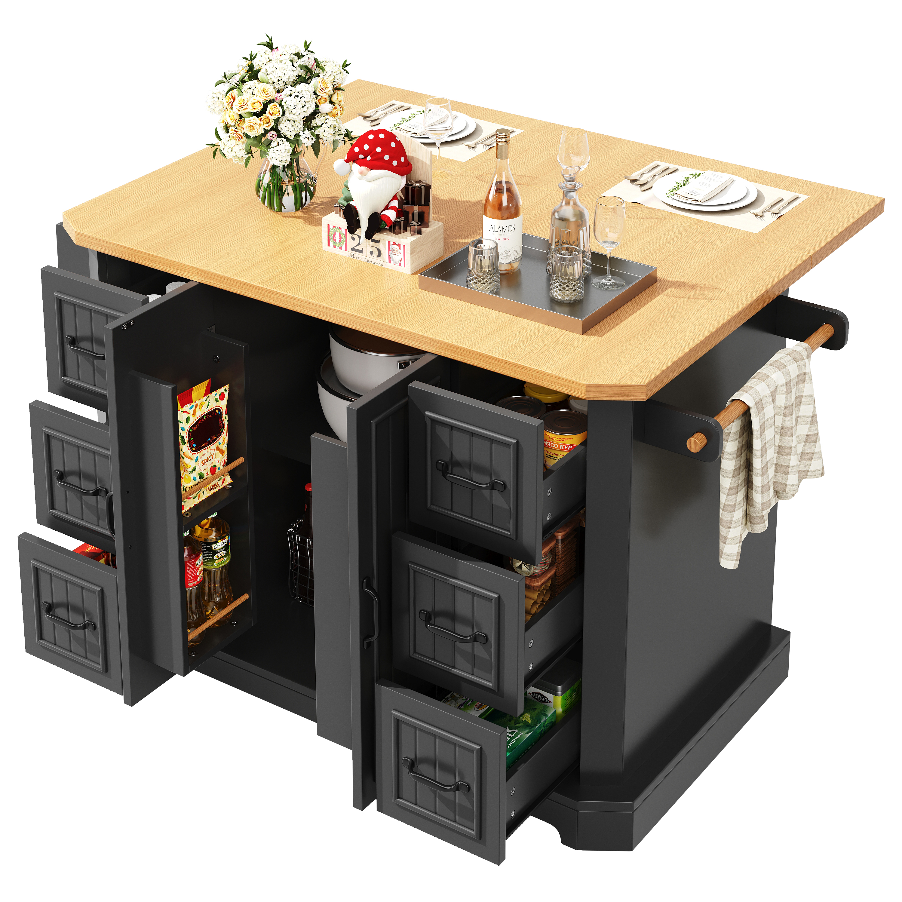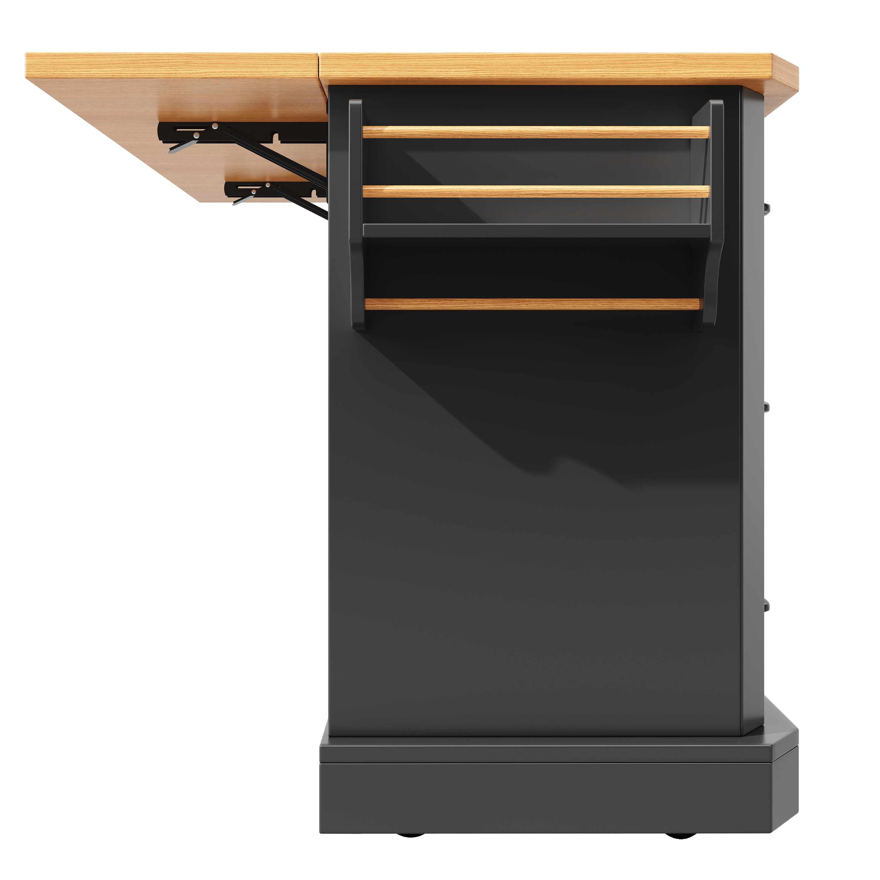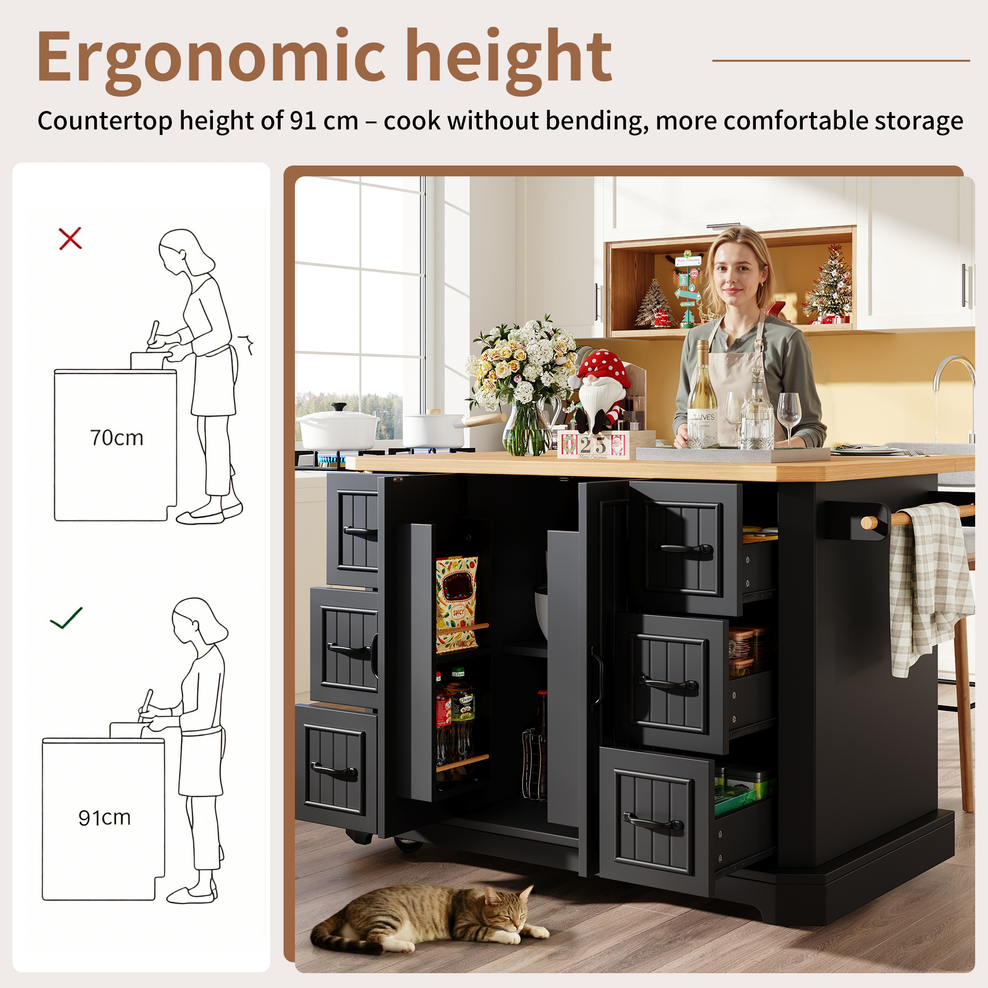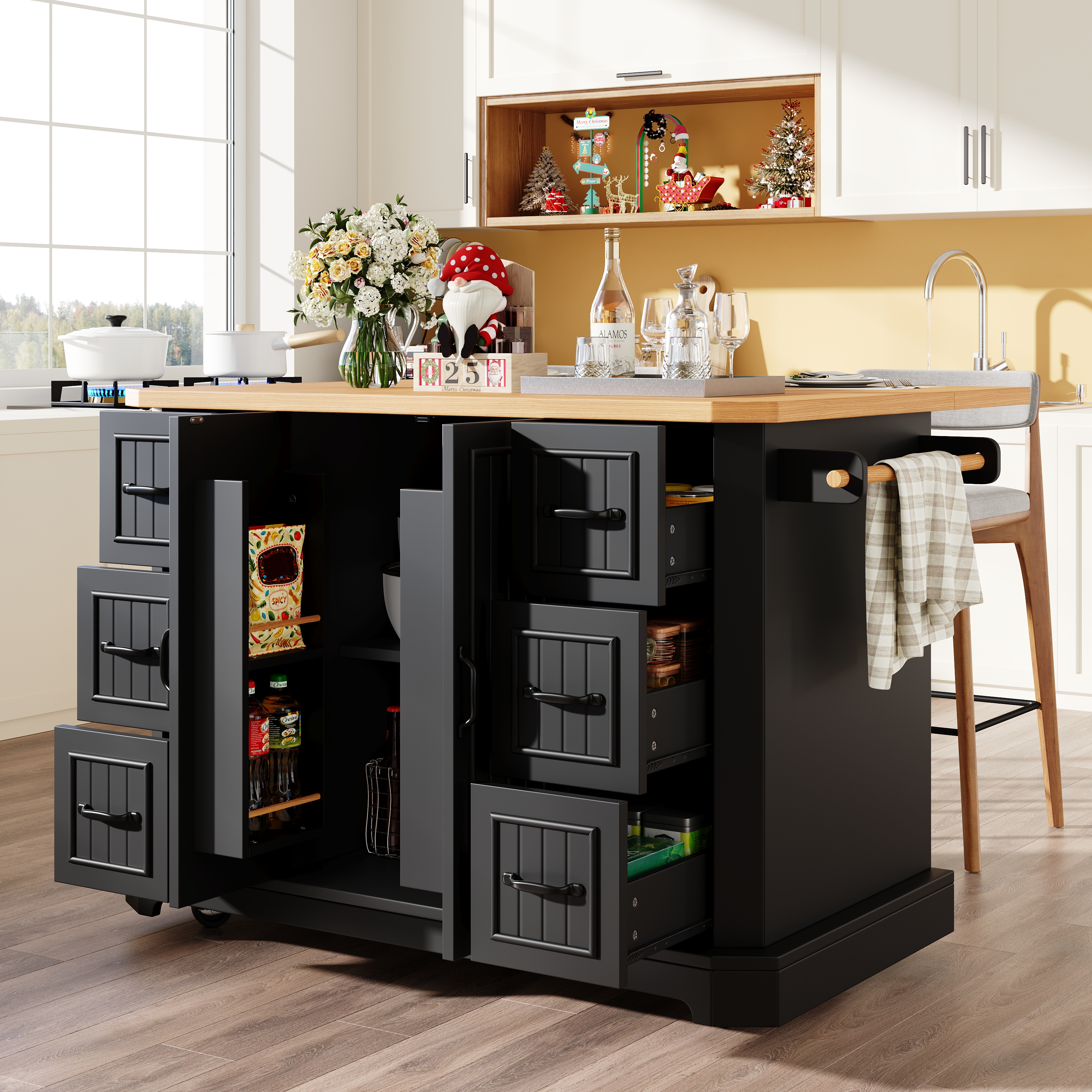 Product Name:Mobile Kitchen Island Cart on Wheels - Cabinet with 2 Doors & 6 Drawers, Adjustable Width 45-75cm, White/Black