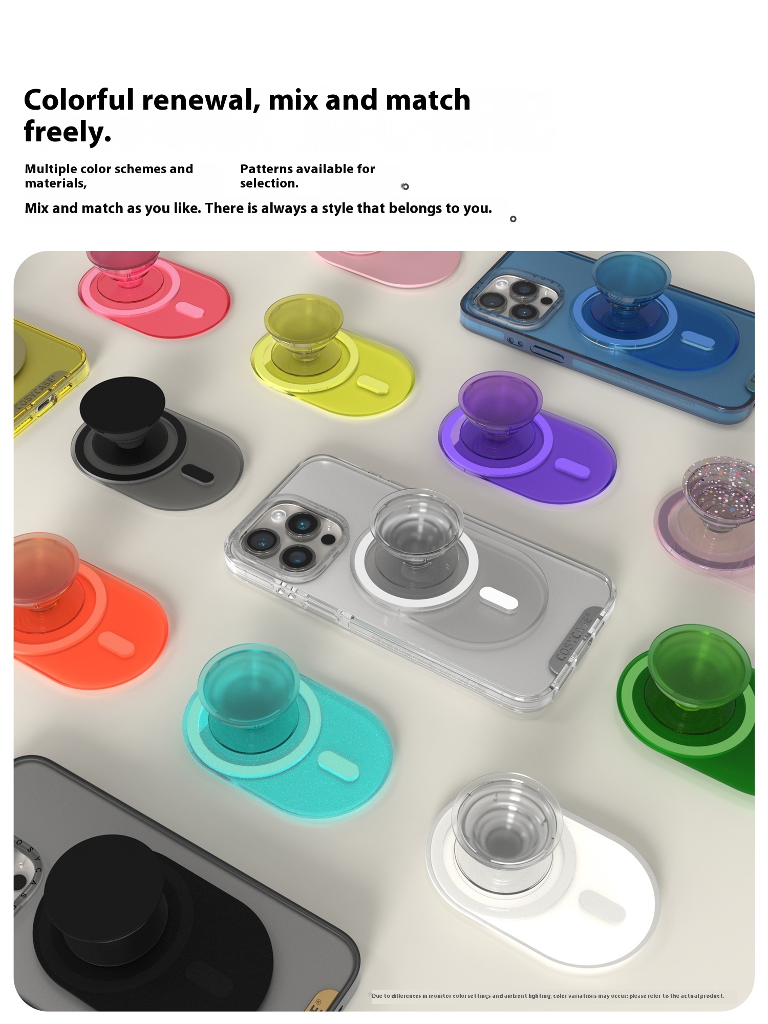 Color: white, black and white, black and gray, black, pink, green, yellow, blue and purple