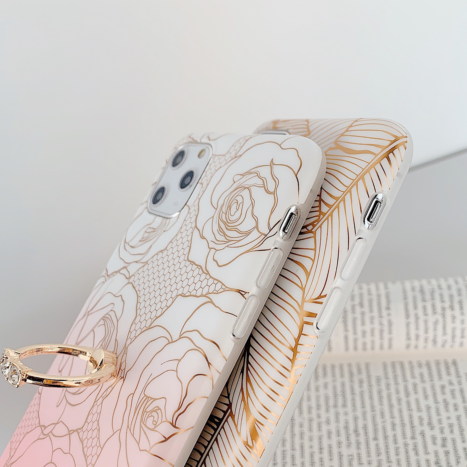 Color: Bronzing banana leaf diamond ring, bronzing rose flower diamond ring