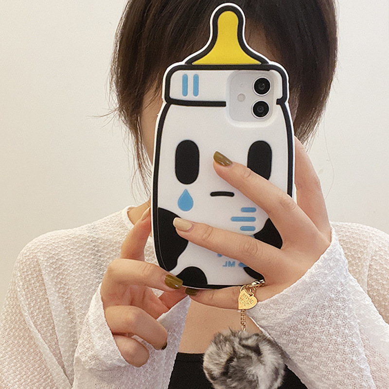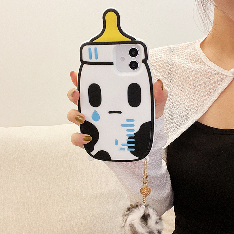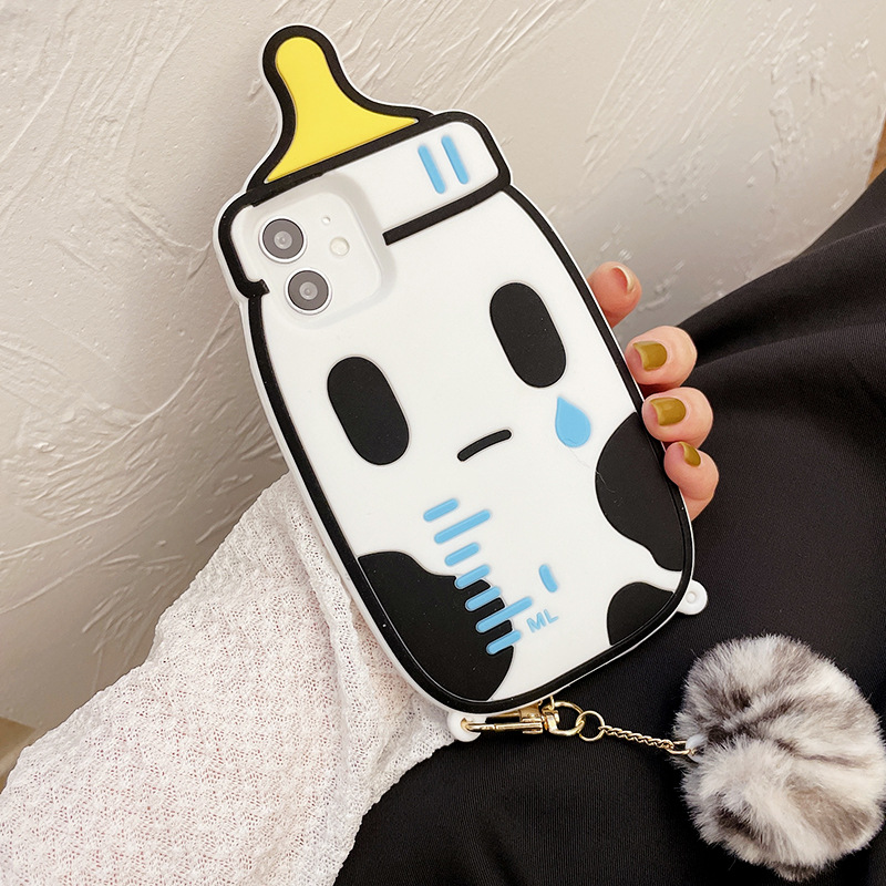 3D cute cartoon baby bottle baby bottle protective cover for iPhone 12Pro MAX 11Pro XS Max XR 7 8Plus spherical pendant lanyard rope cow cover
