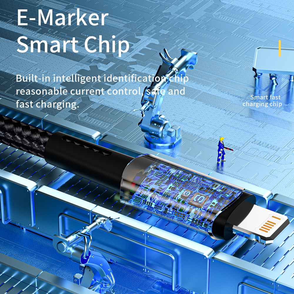 PD protocol, maximum support of 27W, built-in E-MARK chip, aluminum alloy lighting design, real-time observation of the working state, reinforcement and lengthening of the net tail, bending resistance and non fracture, anti flame retardant wire, safer use, 480MB/S high-speed transmission of picture files easily.