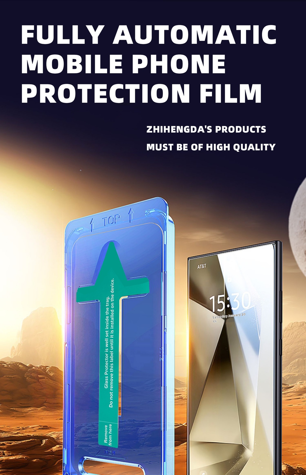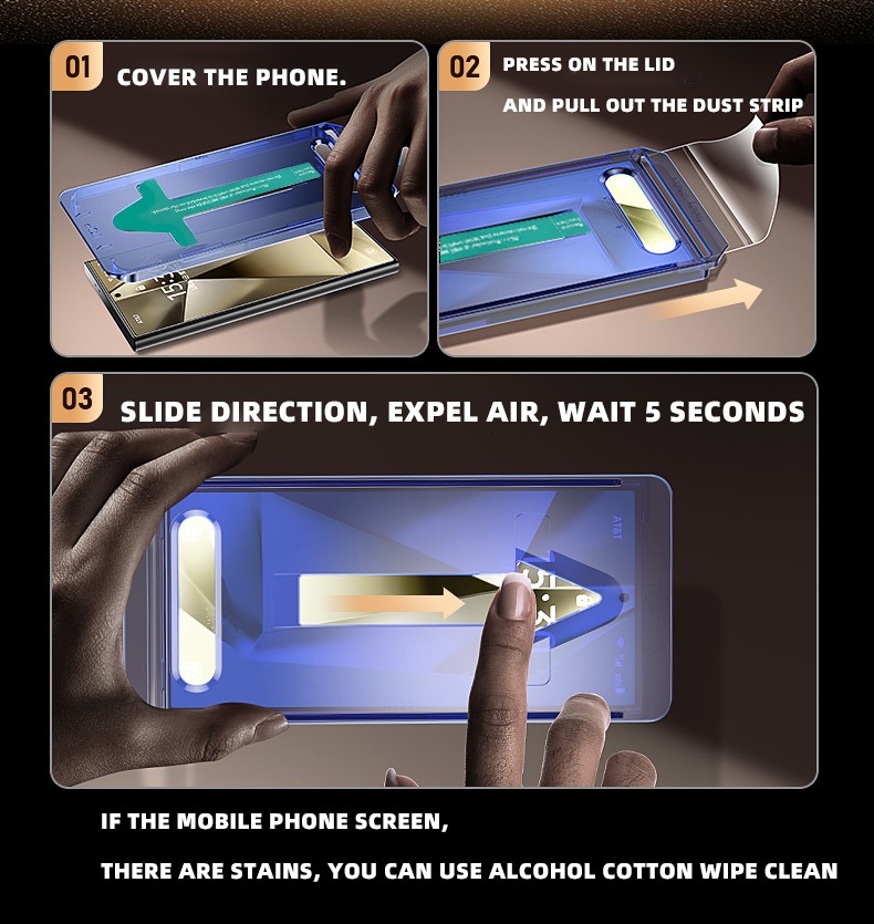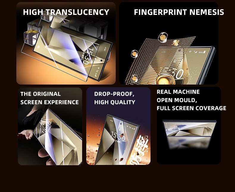 Screen protector features: HD, anti-fingerprint, full screen, sticker box