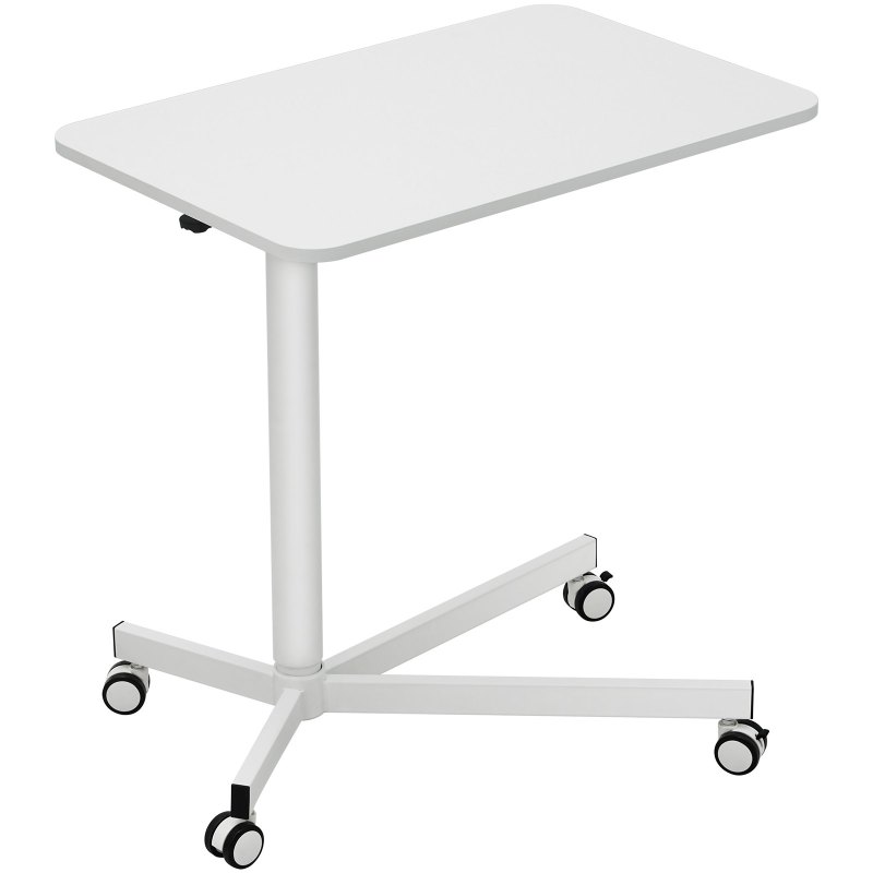 Features & Details Sit or Stand, You Decide: Driven by the pneumatic gas spring system, VEVOR sit-stand desk can be easily adjusted from 28.5" to 44.2". Simply press the lever, and you can customize it to your preferred height and transit from sitting to standing at your will. Achieve optimal working posture, reduce your back pain, and promote a healthier lifestyle. 44LBS Large Loading Capacity: Made of high-quality 15mm thickened particle board, our mobile standing desk can stably handle up to 44lbs of weight. X-shaped steel bottom base combines with 60mm diameter poles and 2mm thickened steel frame, it can securely accommodate your office supplies, entertainment devices, and training materials without any shaking, more stable and solid than others. Move with You Anywhere: 4 x 360° rotation wheels (2 lockable) offer great mobility, allowing you to move the rolling laptop desk to any desired location. 2 of the wheels feature reliable brakes and quick-stop-function, enabling you to lock the desk freely and keep it stable in place. This stand-up desk on wheels is perfect for home, offices, art and music studios, libraries, and medical settings. Spacious Desktop Space: 29.1" x 18.9" super large desktop space provides ample room for all your work needs. Effortlessly accommodate multiple devices like computers, laptops, and folders, and support you to work freely without any space limitations. Whether you're dealing with documents, writing, reading, writing, painting, and more, this mobile sit stand workstation has got you covered. Compact & Space-Saving: Our compact laptop standing desk takes less space, making it suitable for various small places. Combined with modern style and functional utility, this mobile standing desk will be attractive furniture as a laptop desk, snack cart and writing desk beside the sofa or bed.