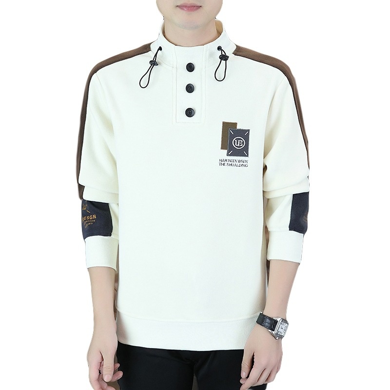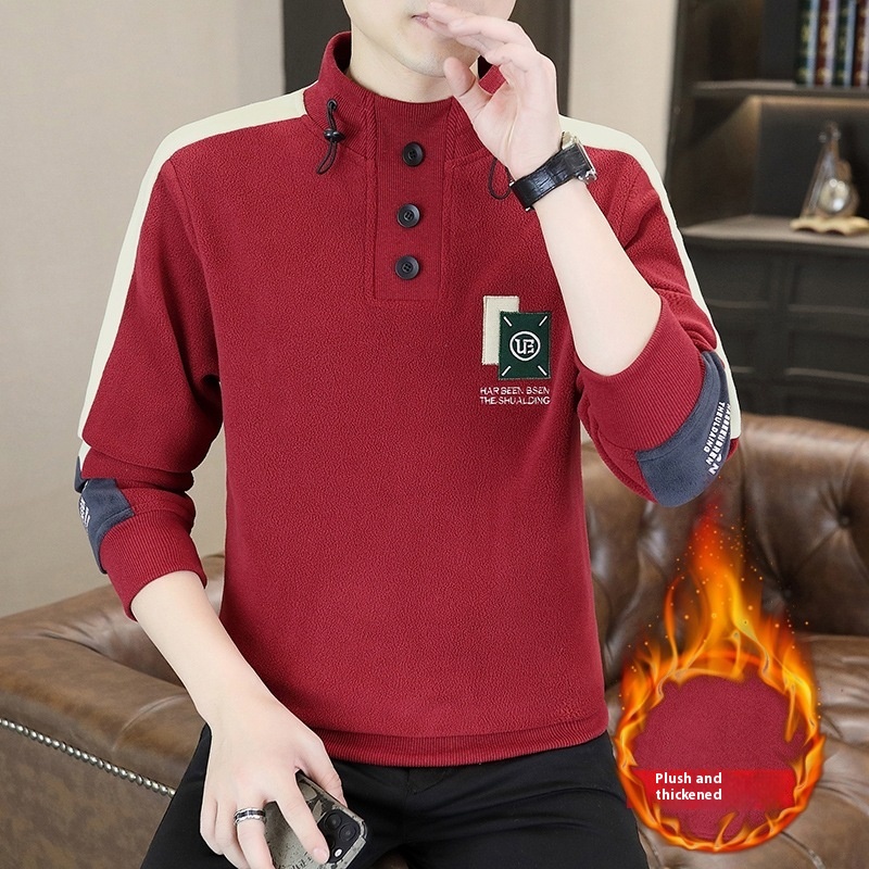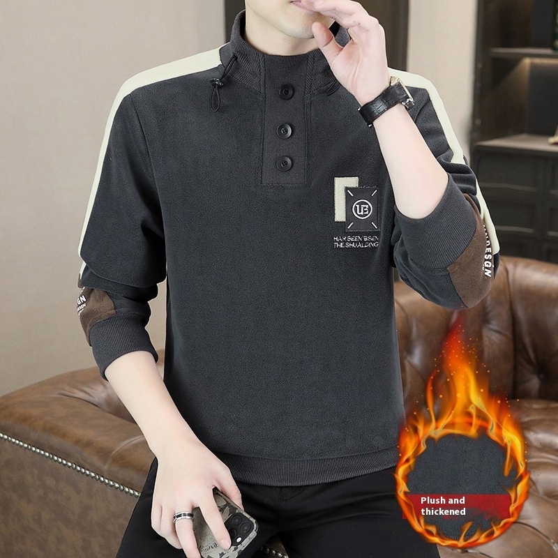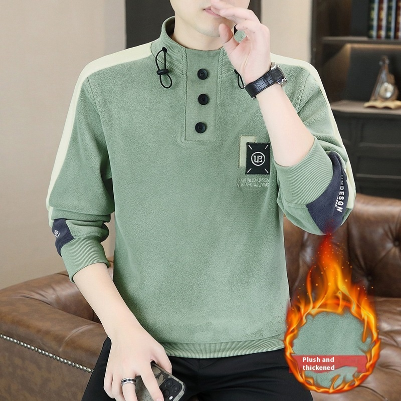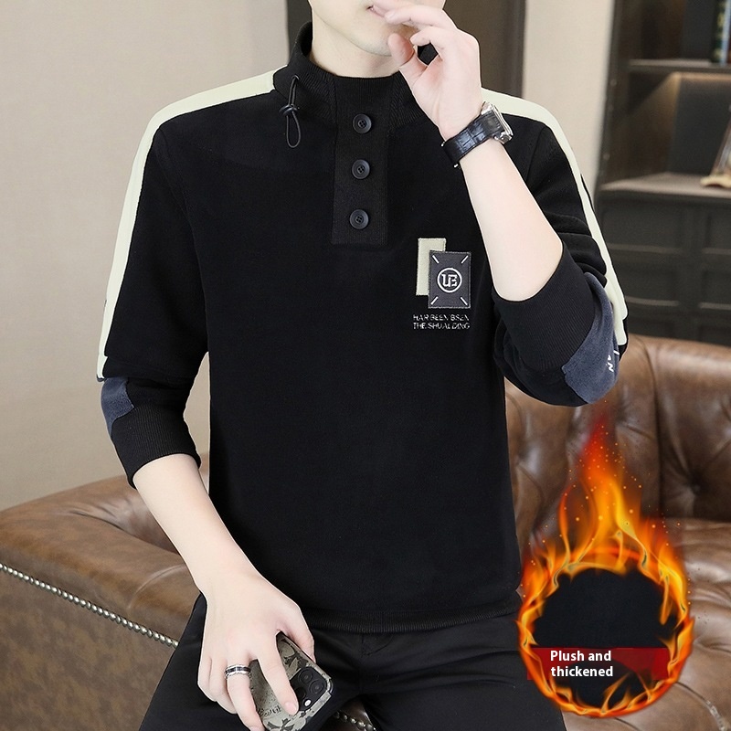 Mock Neck Hoodie Men's Autumn And Winter Fleece Lined Warm Top