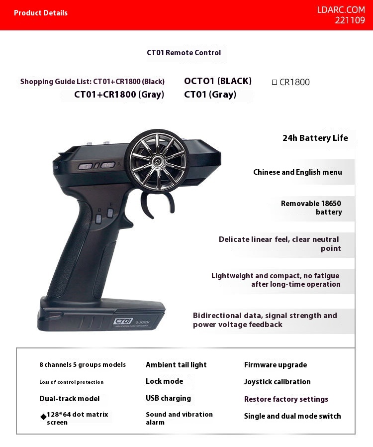 Color: gray remote control 8-way receiver battery, black remote control 8-way receiver battery, gray remote control alone, black remote control alone