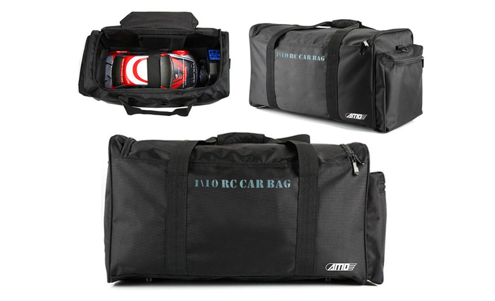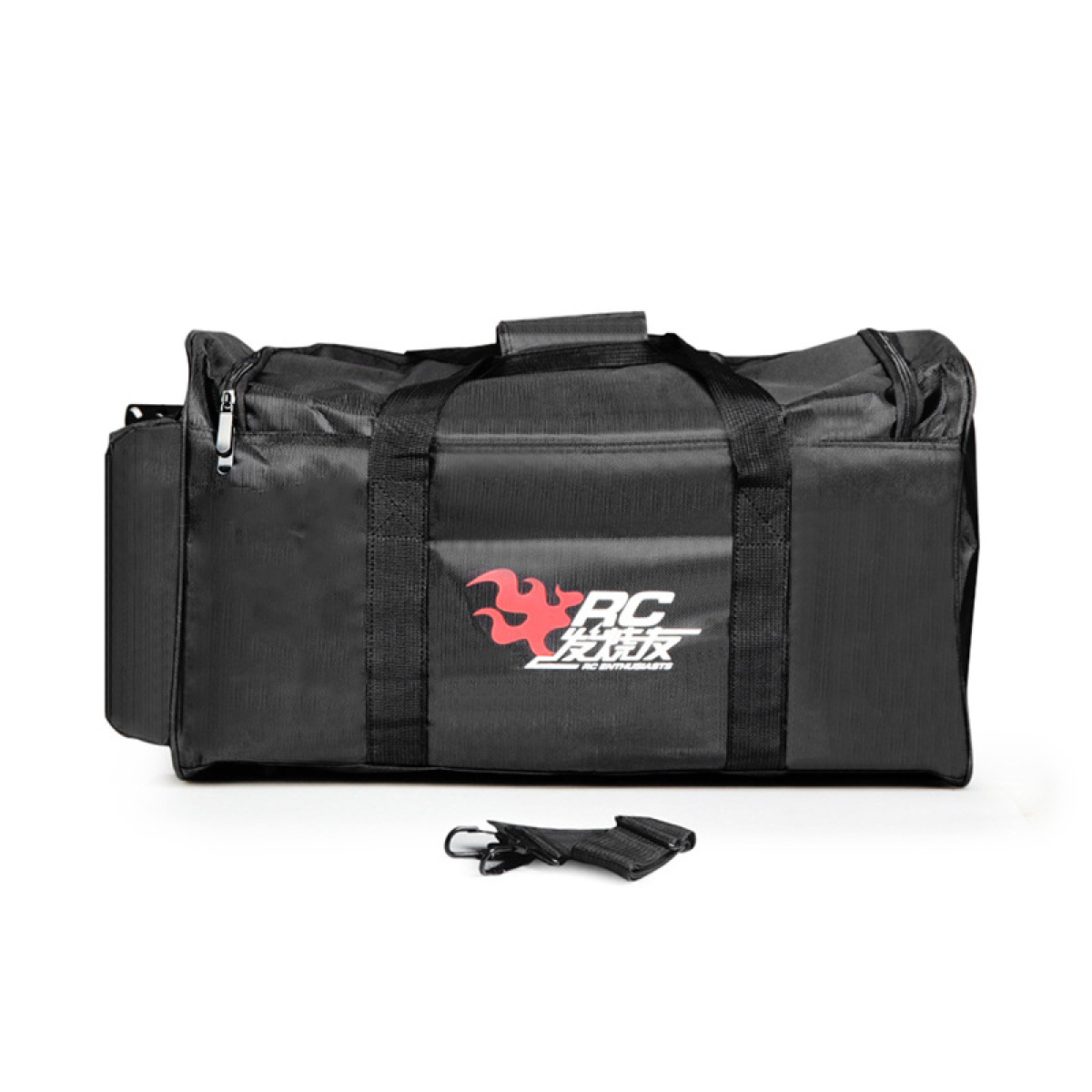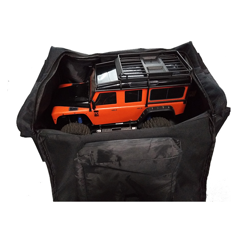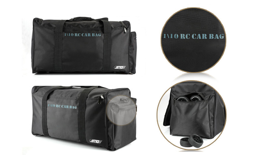 There are zipper pockets on both sides of the bag, which can hold small tools or accessories, a large zipper bag on the side for tires, etc. There is a pocket on the top of the bag with Velcro, which can be installed with remote control. There are straps with Velcro at the bottom of the inside of the bag, which can tie the car to prevent the car from shaking, and there is a zipper pocket on the outside of the bag. All bags have a one-shoulder strap, which can be carried by hand or on one shoulder.