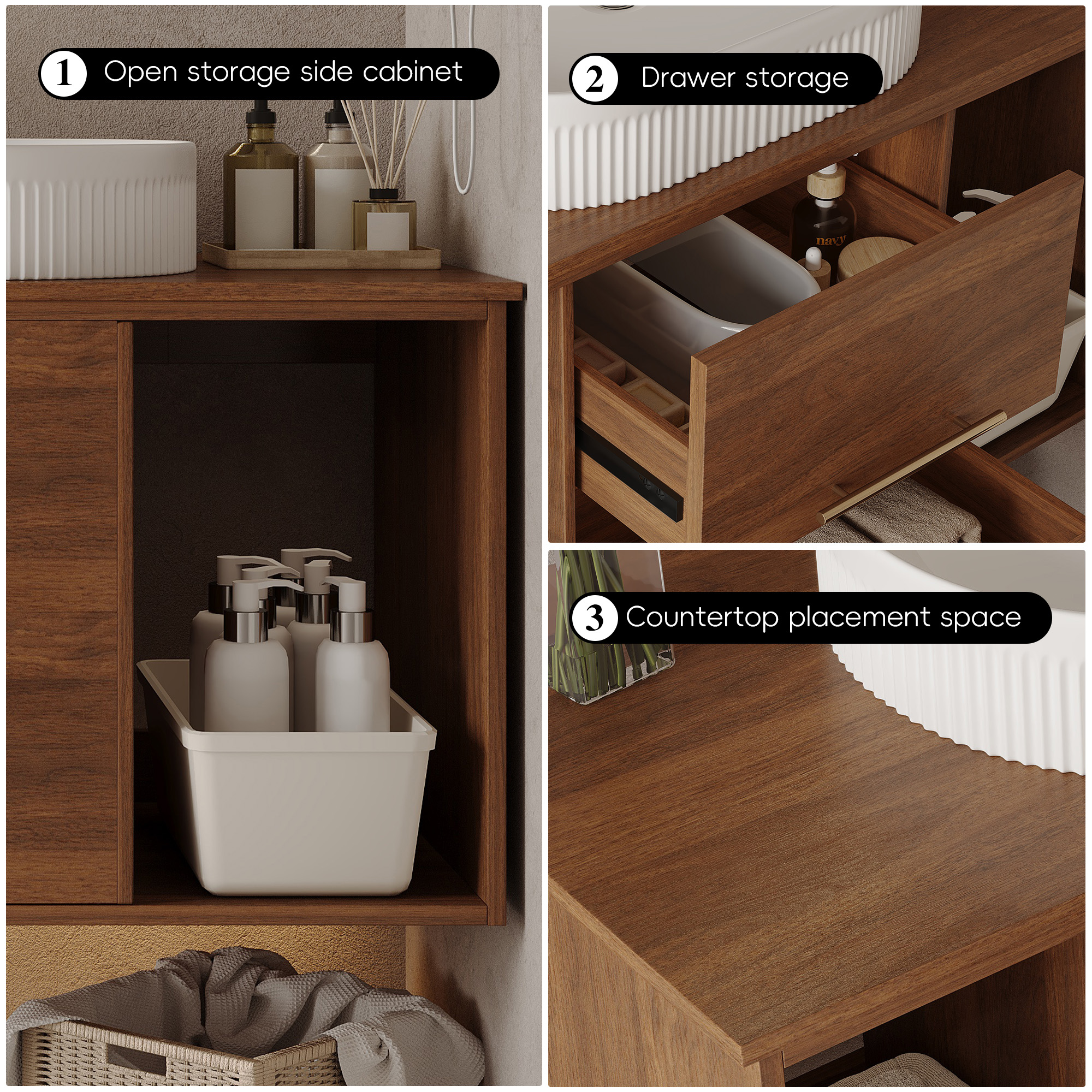 Product Name:Modern 39.4 Wall-Mounted Bathroom Vanity with Oval Ceramic Sink Floating Vanity Multi-Layer Solid Wood Cabinet Soft-Close Drawers Open Shelf Storage